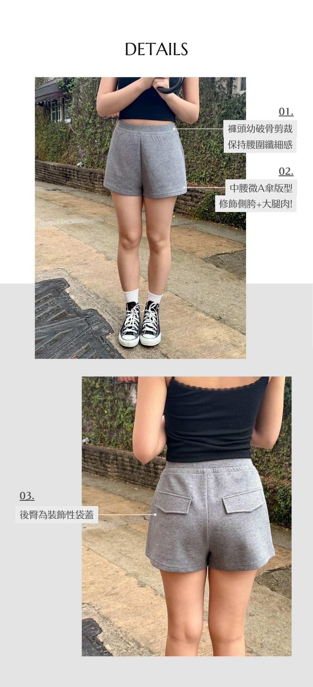 中腰微A傘版型 / 修飾小腹 / 顯腰幼 / 不顯三角位 / 豐滿臀圍友好