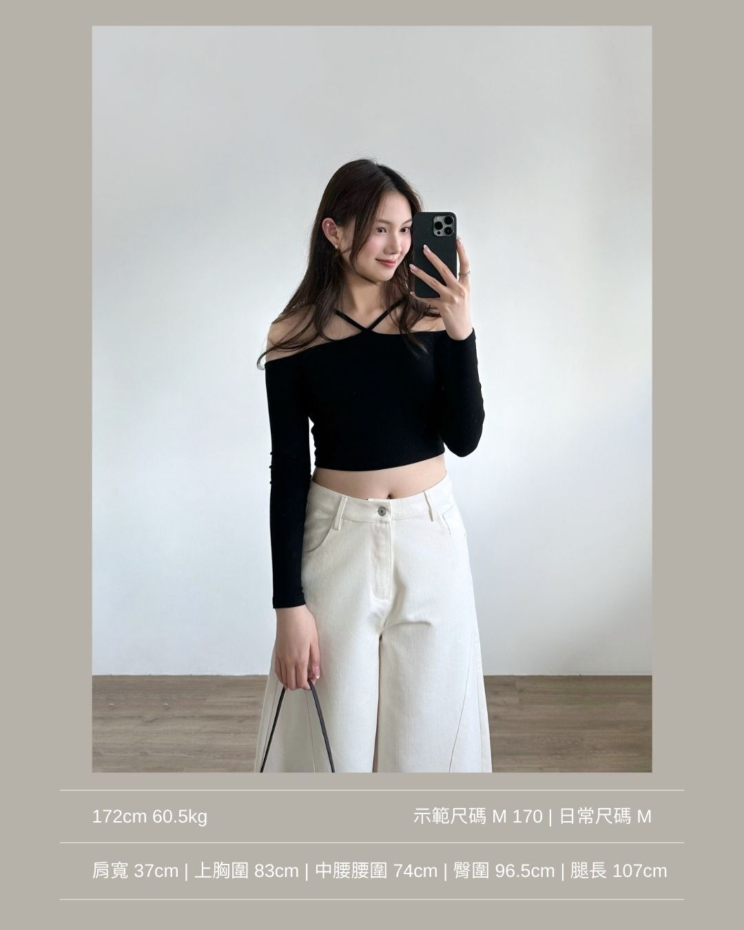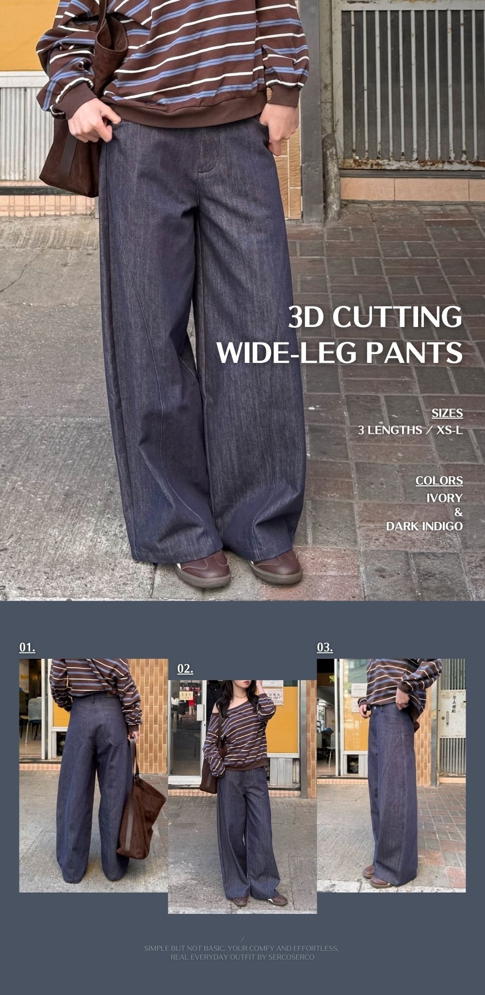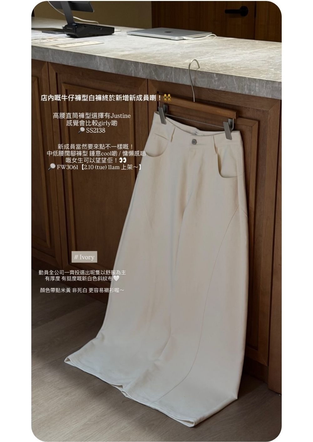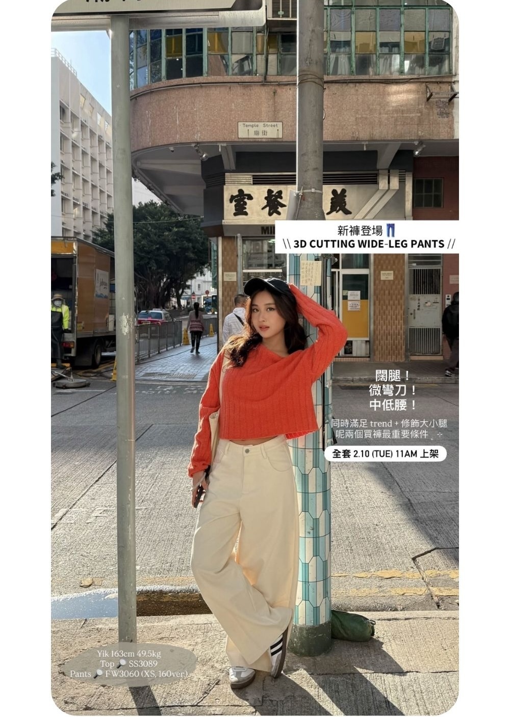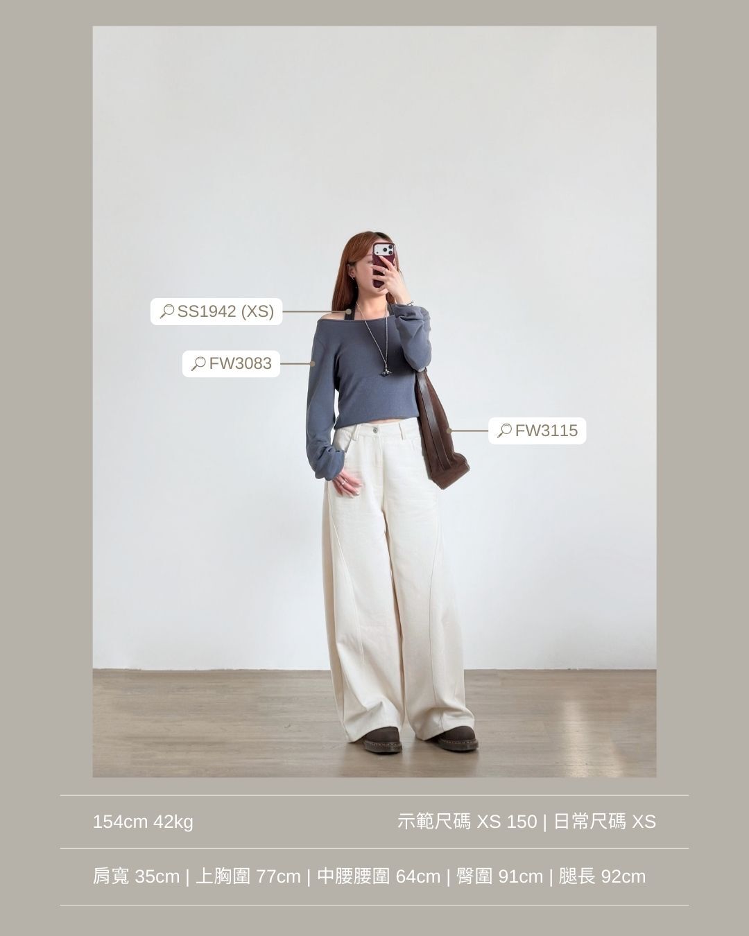 中低腰闊腿褲型 / 褲管兩側為弧線立體剪裁 /