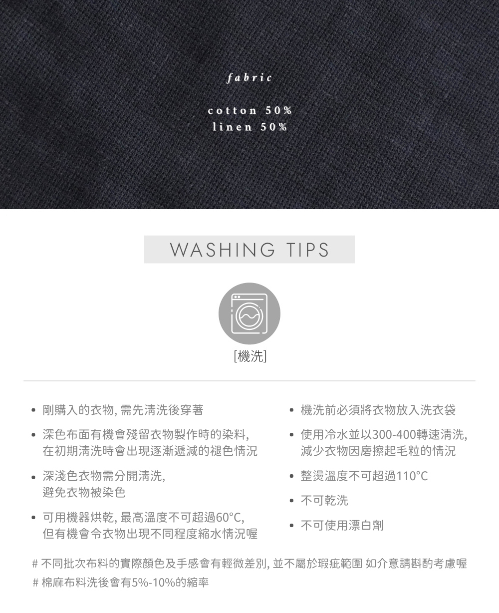 ※ 棉麻布料洗後會有5%-10%的縮率,此為布料特性,請悉知喔