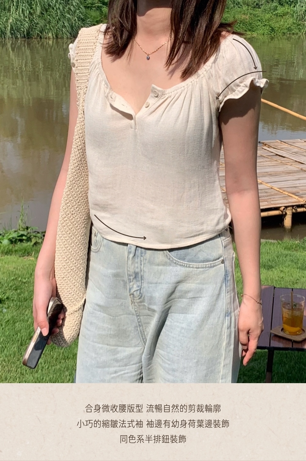 流暢自然的剪綵輪廓 小巧的縮皺法式袖