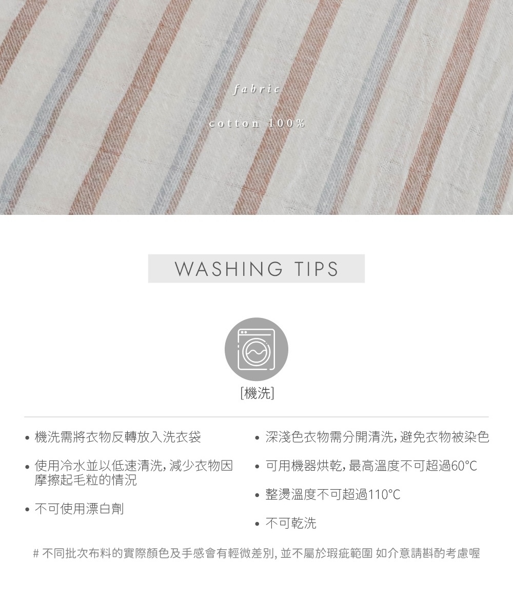 ⋄ 布面自帶暗格紋及皺皺紋理 洗後免整燙