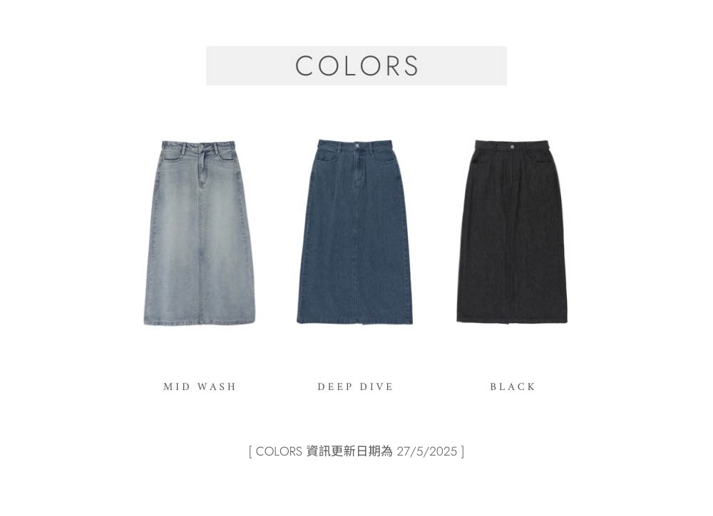 ※ 不同的洗水工序會影響裙款尺寸大小,詳情請參考尺寸表