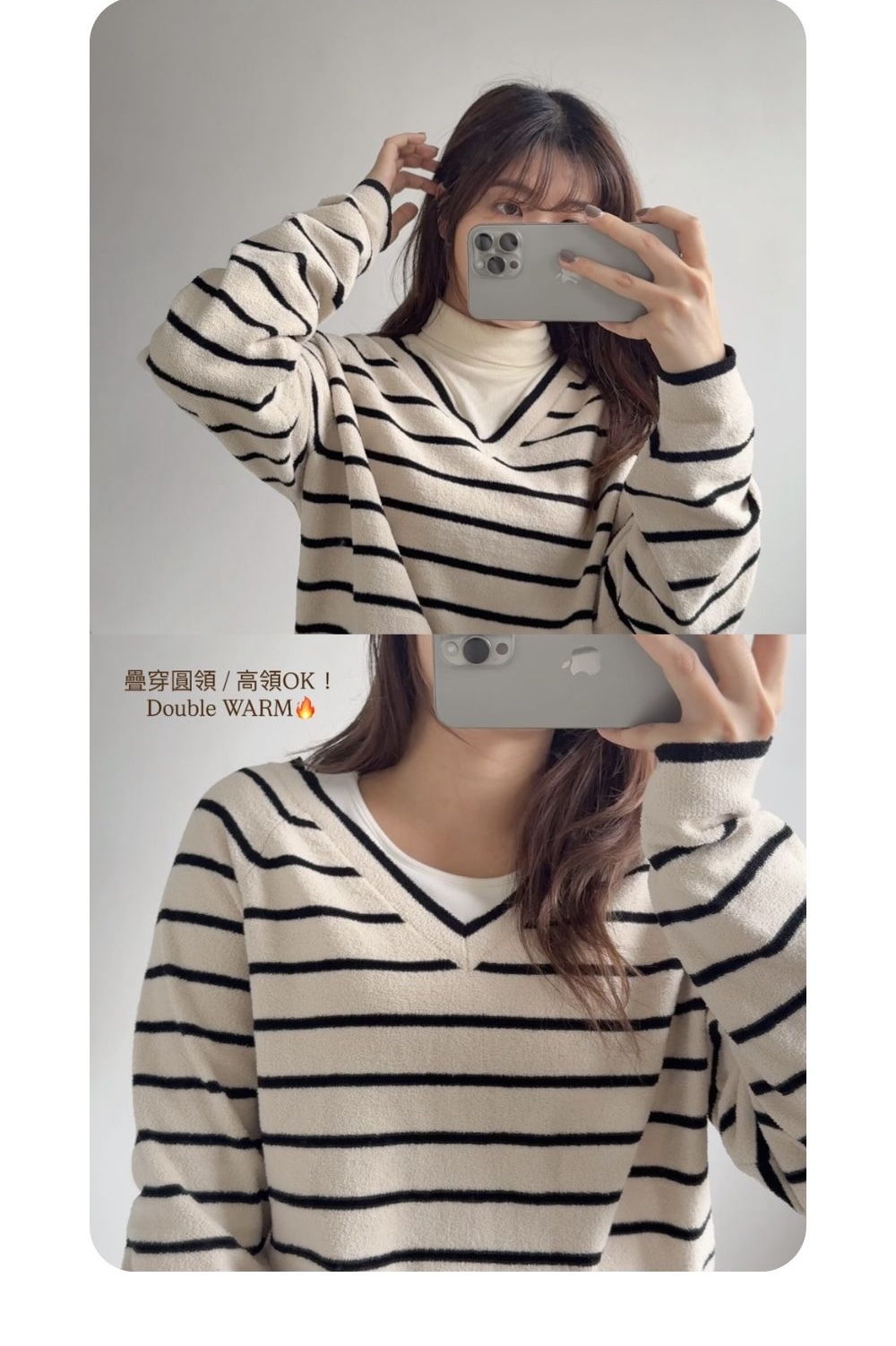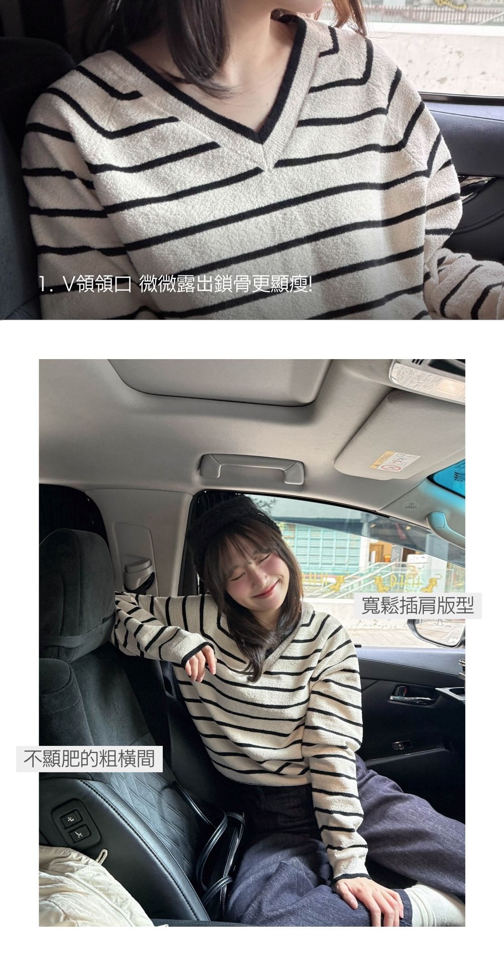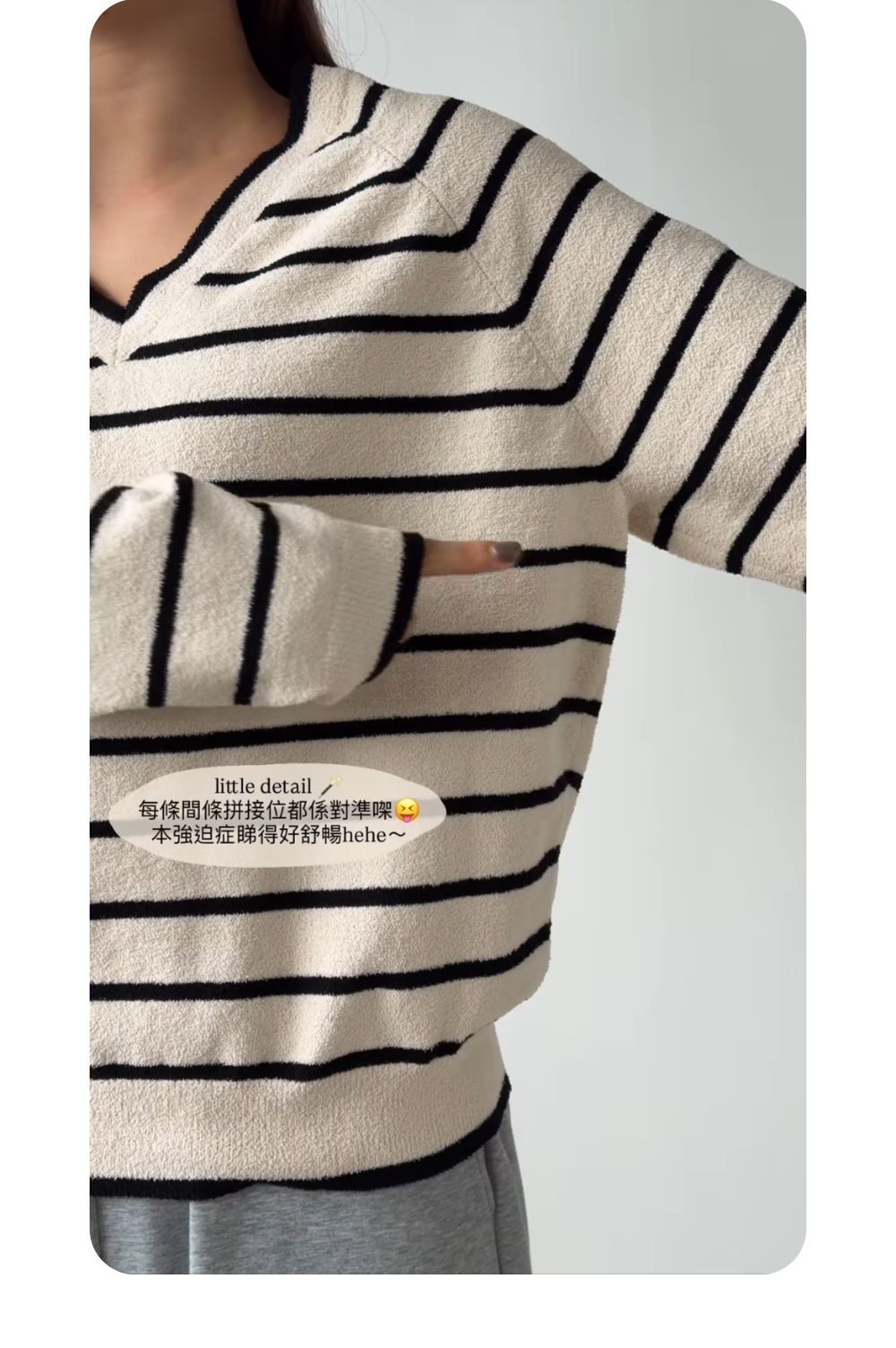 大v領領型和間條把視線集中在鎖骨上👓