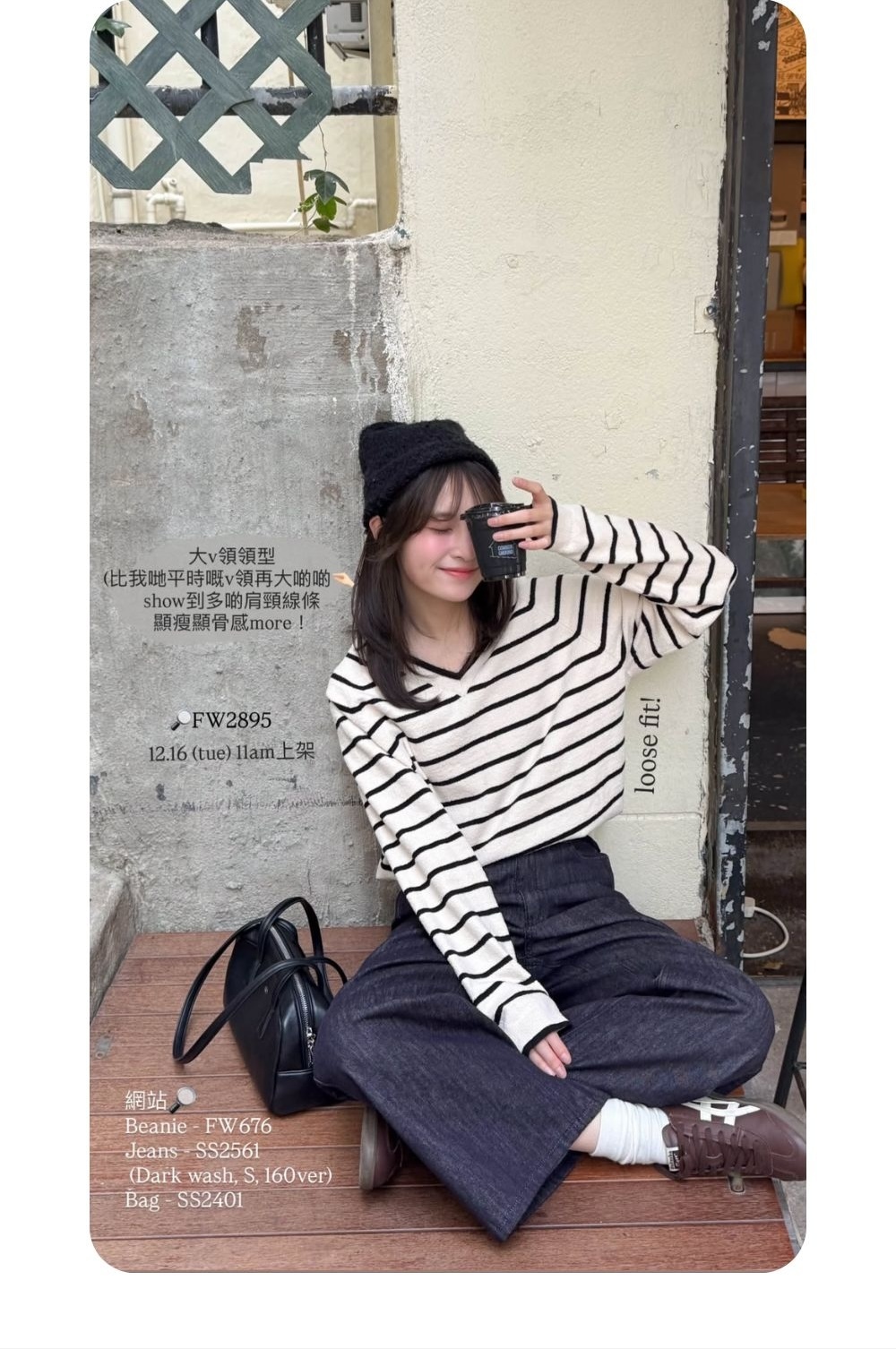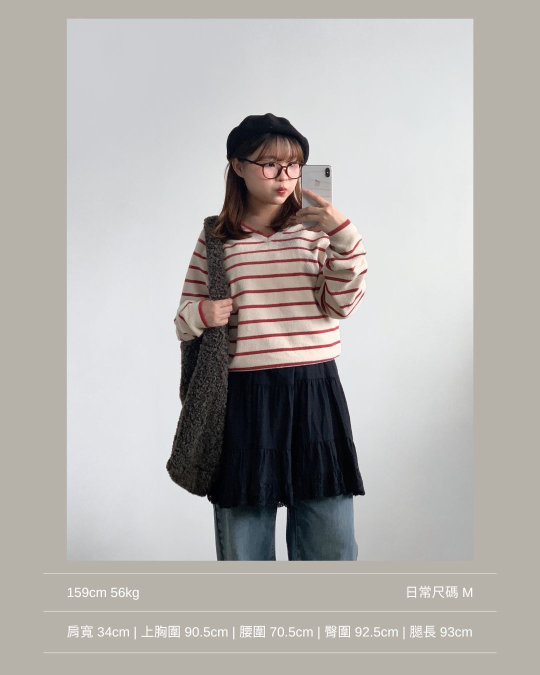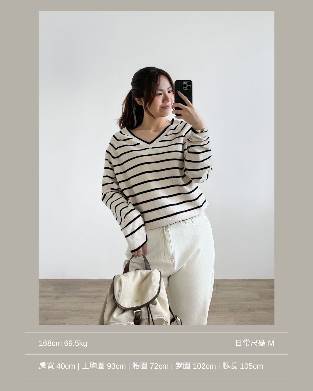 大v領領型和間條把視線集中在鎖骨上👓
