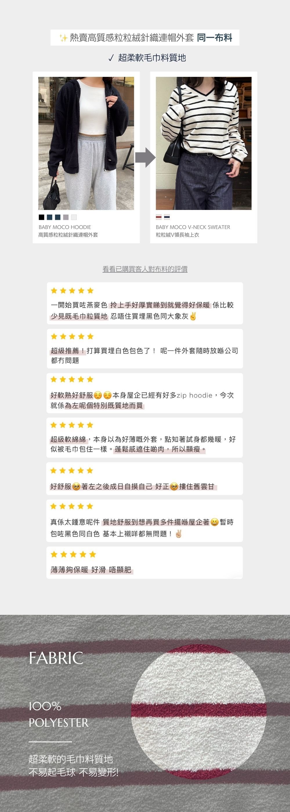 中等厚度 / 超柔軟的毛巾料質地 / 寬鬆插肩版型 / 不顯肥的粗橫間 / 不挑身形 / 顯骨感