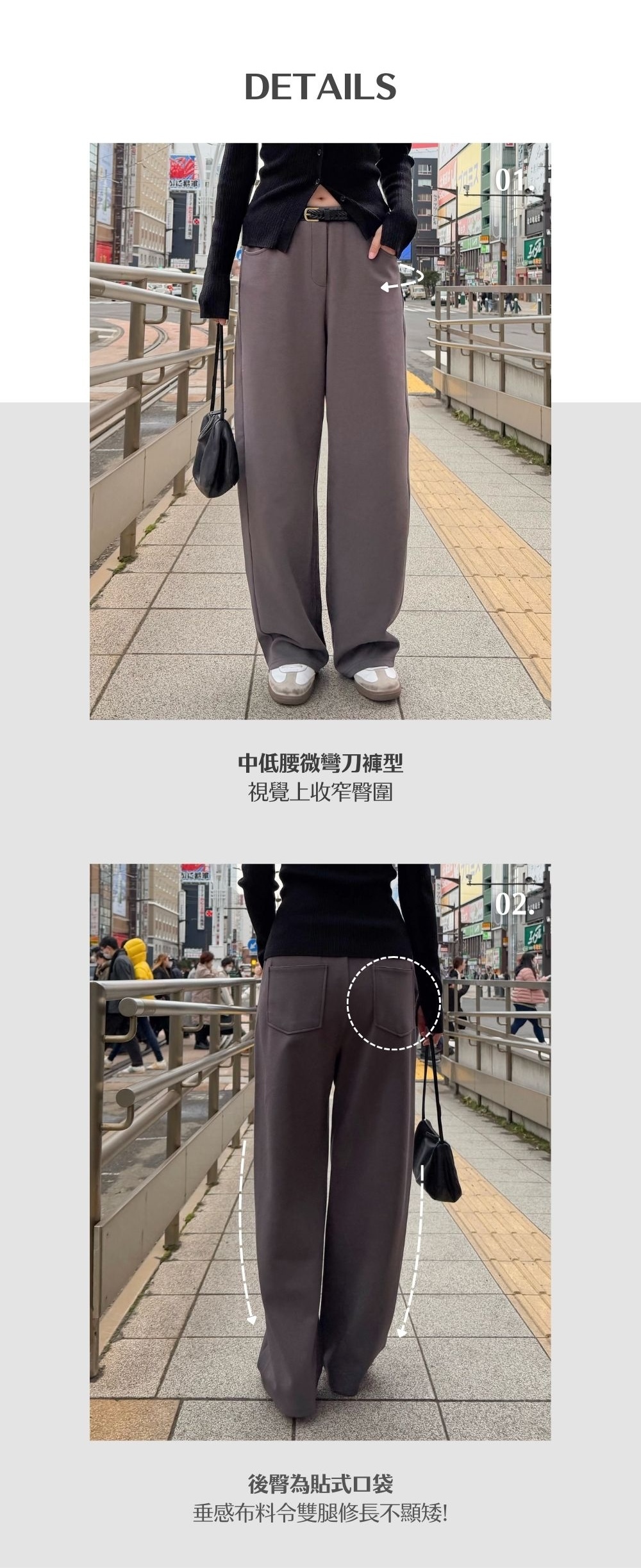 中低腰微彎刀褲型 / 視覺上收窄臀圍 / 遮小腹 / 後臀為貼式口袋