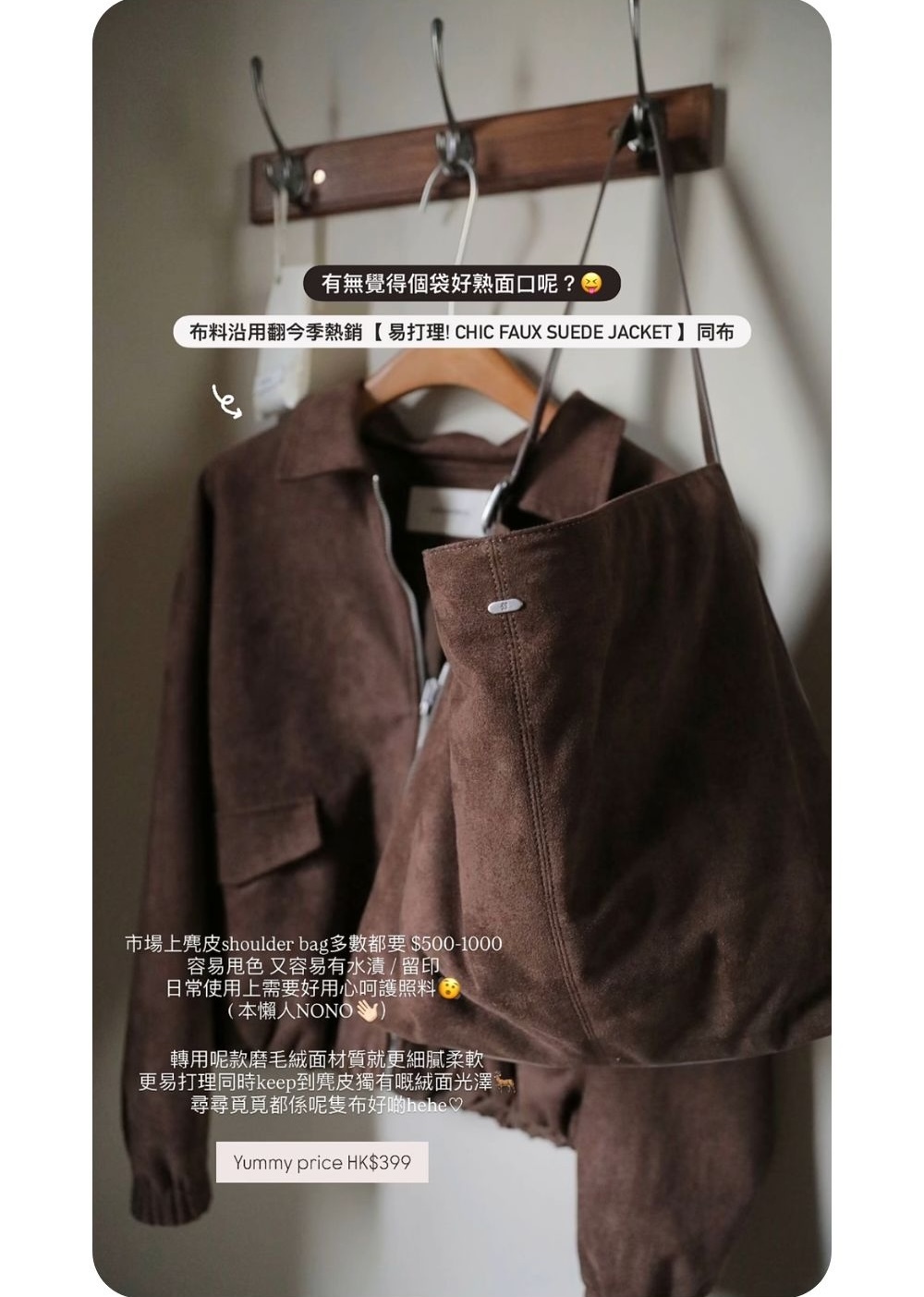 仿麂皮材質/ 順滑磨毛絨面 / 大容量tote bag / 自重輕盈 只有0.44kg /