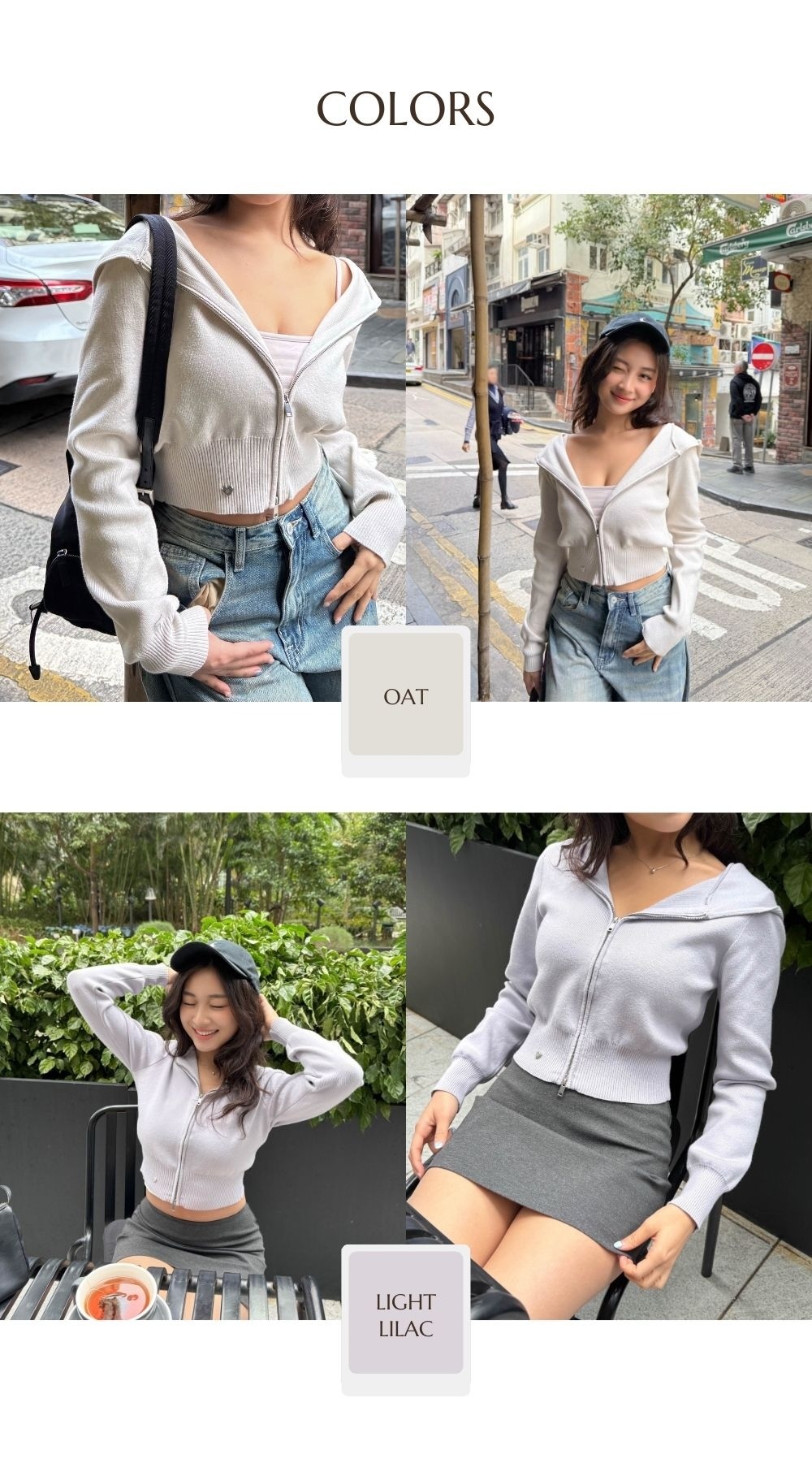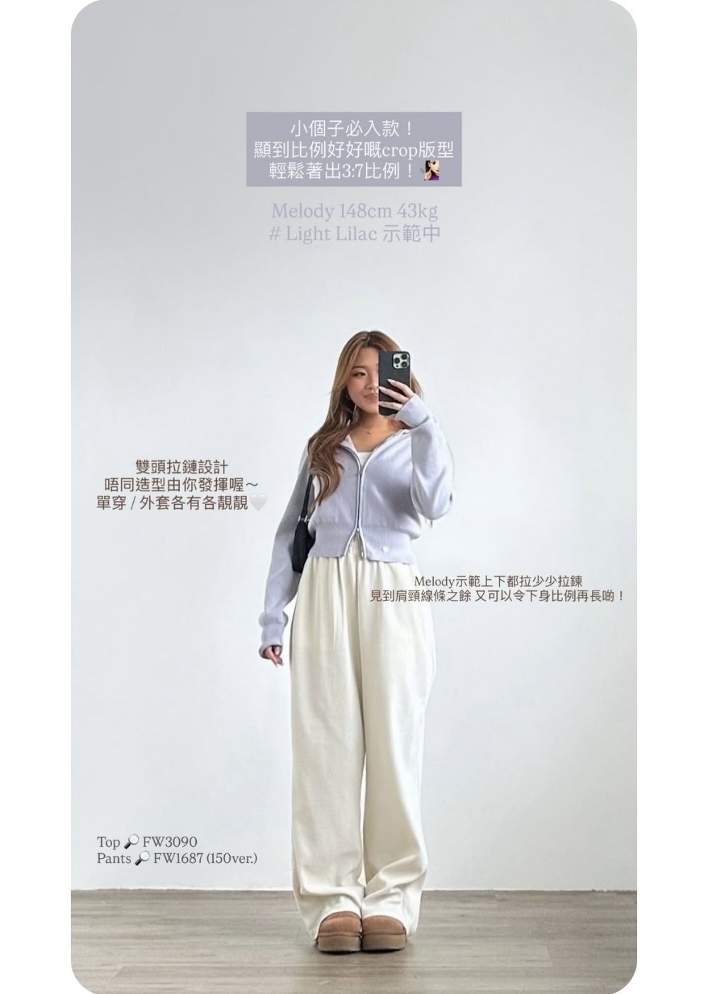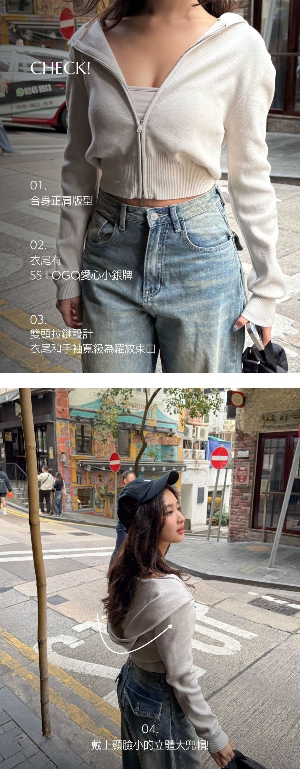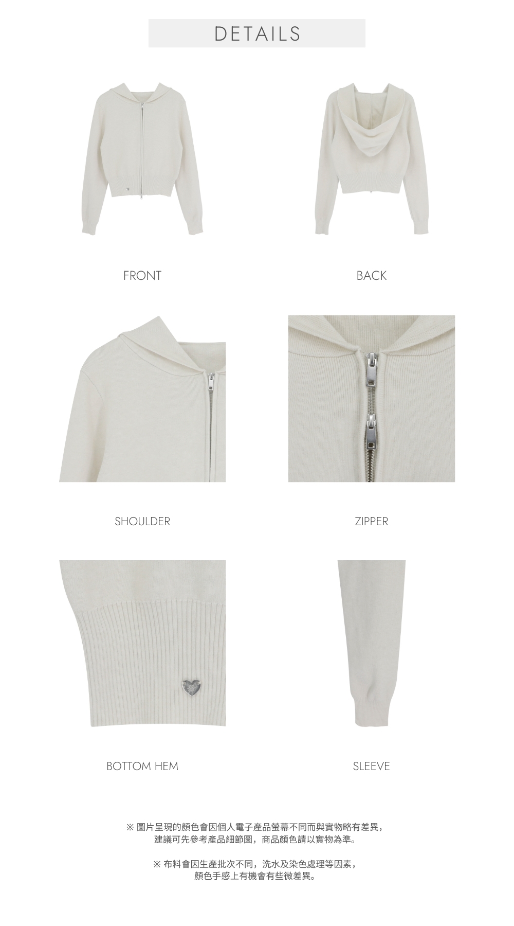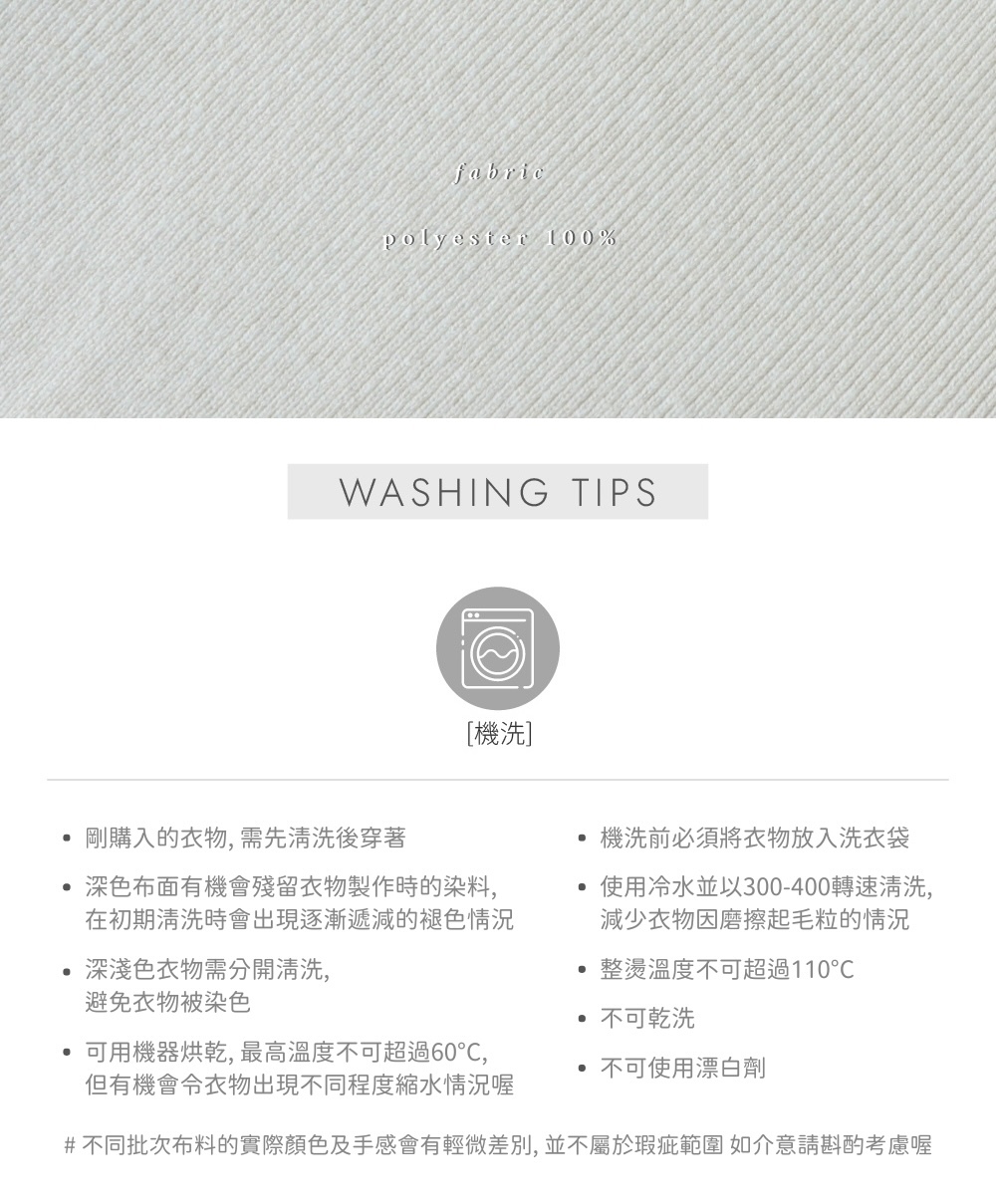 中等厚度 / 幼針高密度針織布料 / 挺版親膚質地 / 雙頭拉鏈 /
