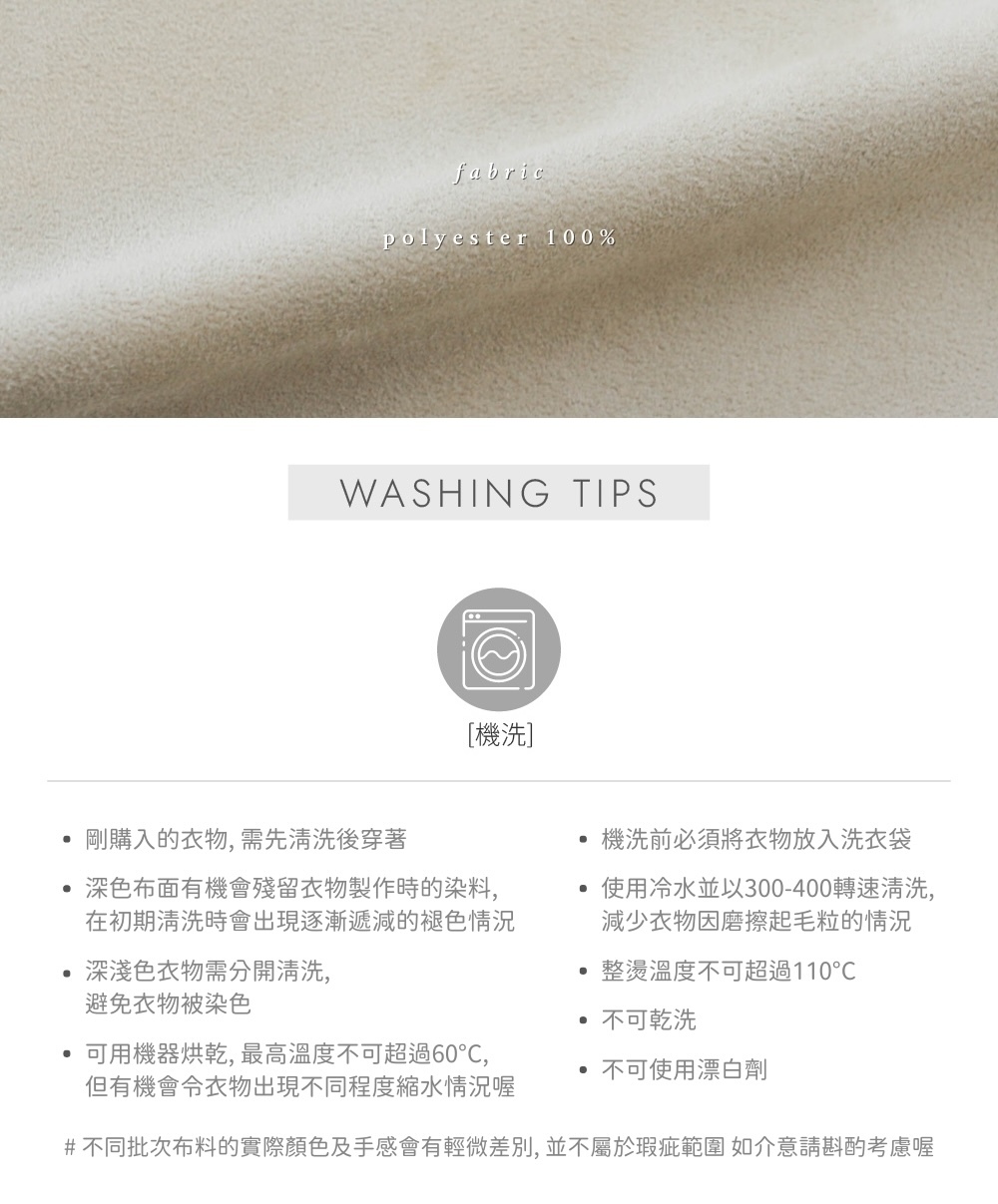 ※ 深色布料或會出現掉色情況,請存放在掛衣袋內收納