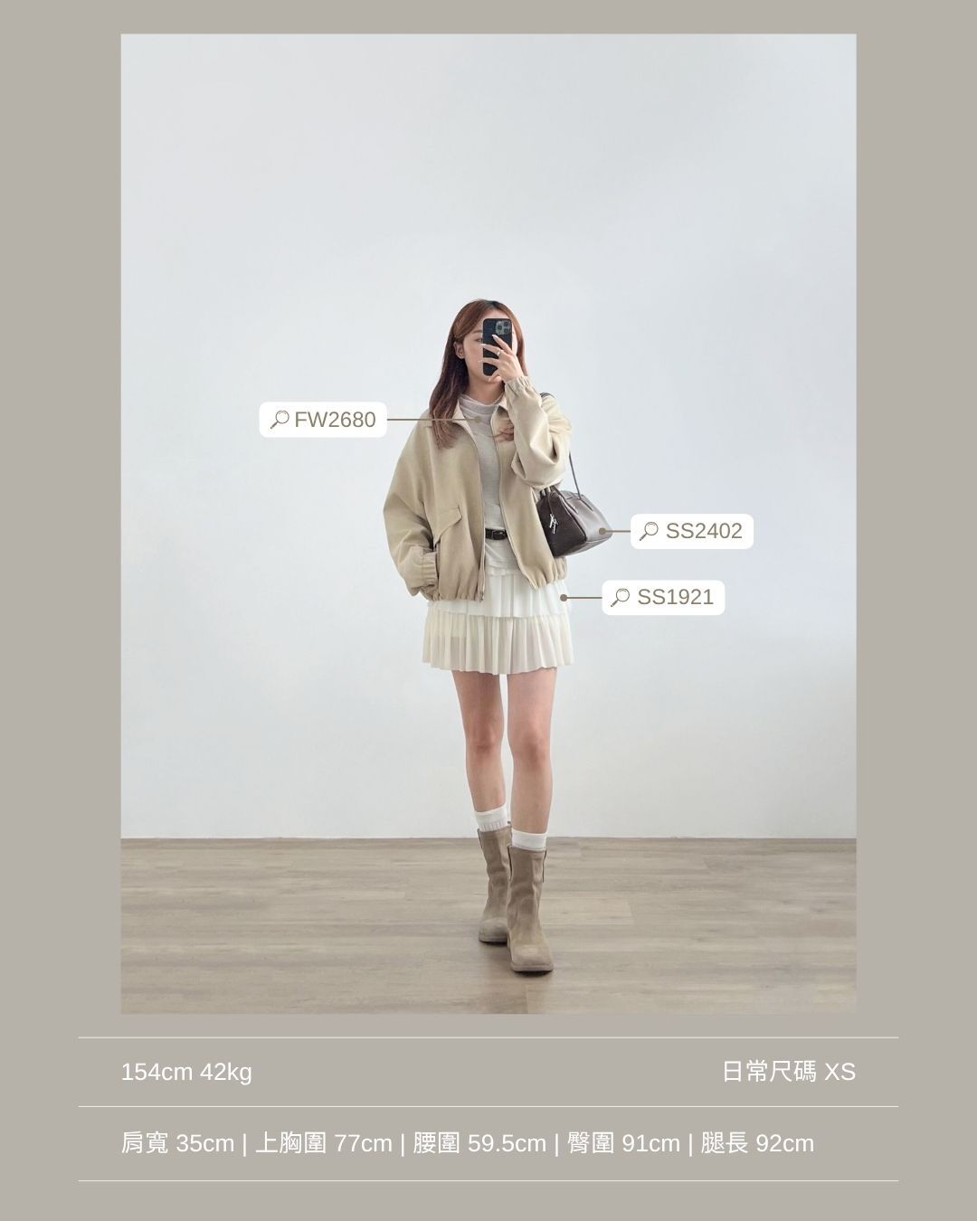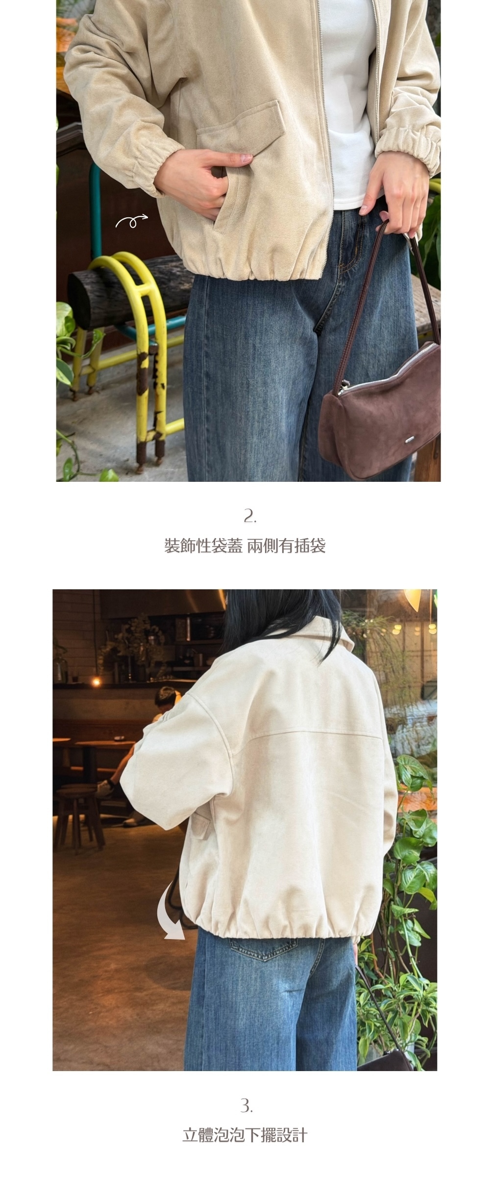寬鬆微落肩版型 / 不挑身型 / 顯直角肩 / 裝飾性袋蓋 / 立體泡泡下擺設計