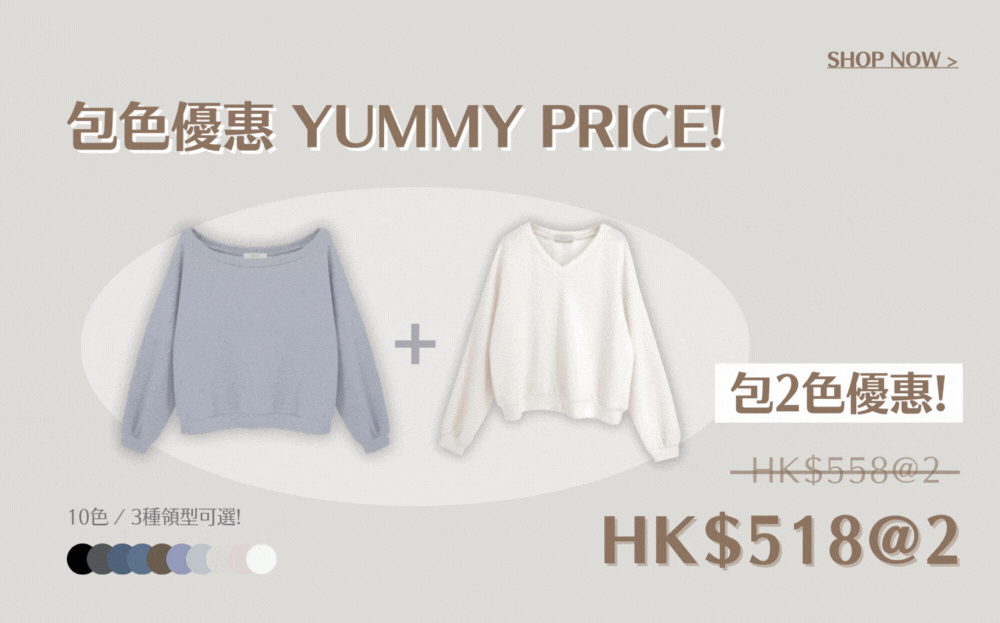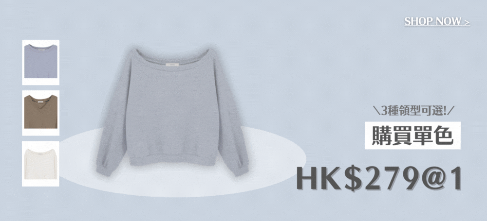 [包色3件!HK$259@1] 「好想擁抱自己2.5」超親膚柔霧光澤衛衣 (3種領型)