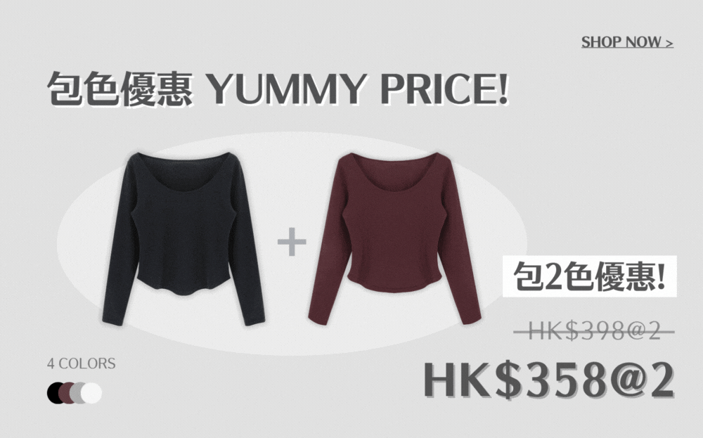 [包色3件!HK$179@1] SOFT COTTON大U領修腰長袖上衣
