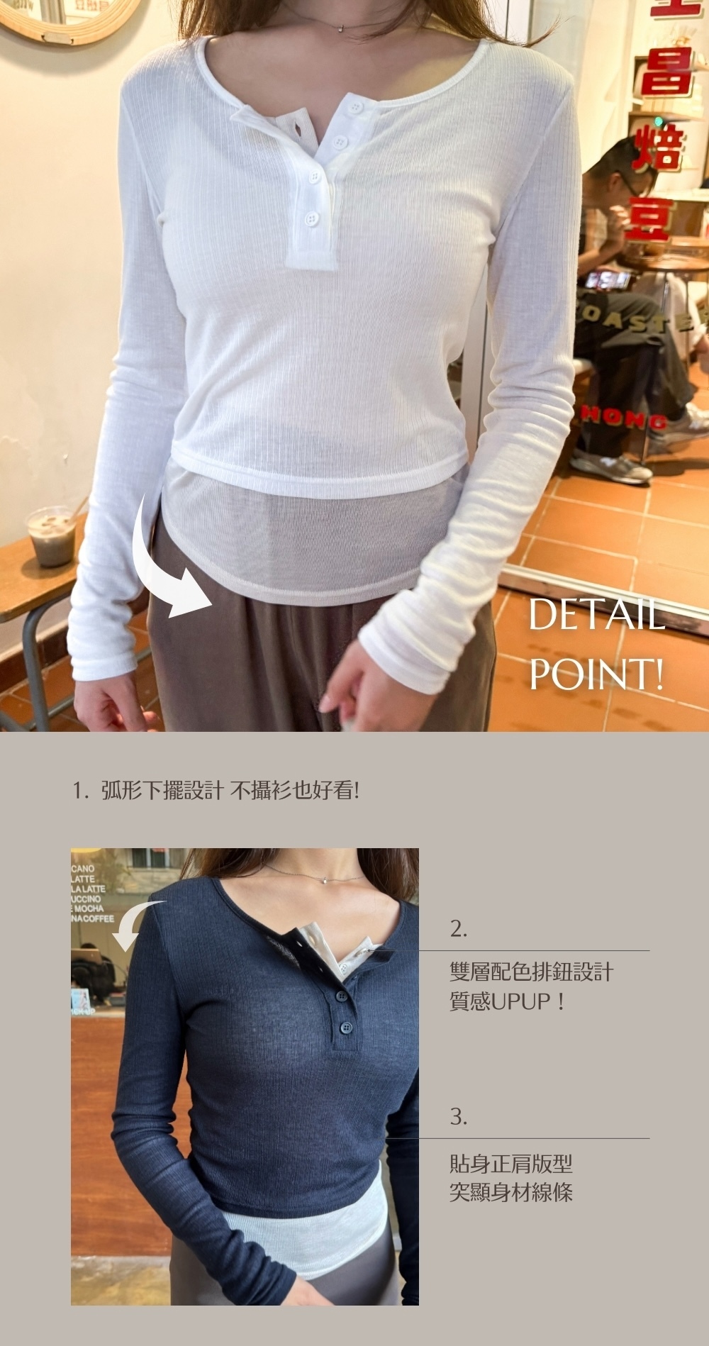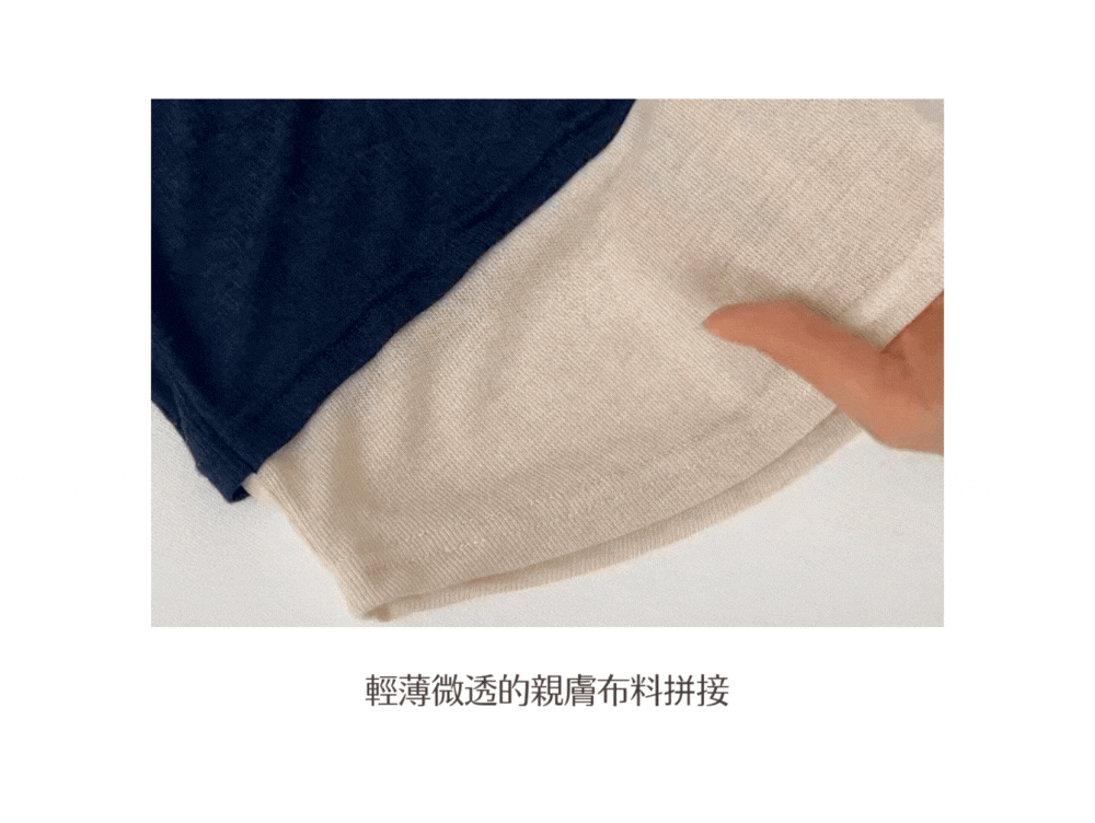 由兩件獨立的透膚上衣縫合在一起🪡🧵