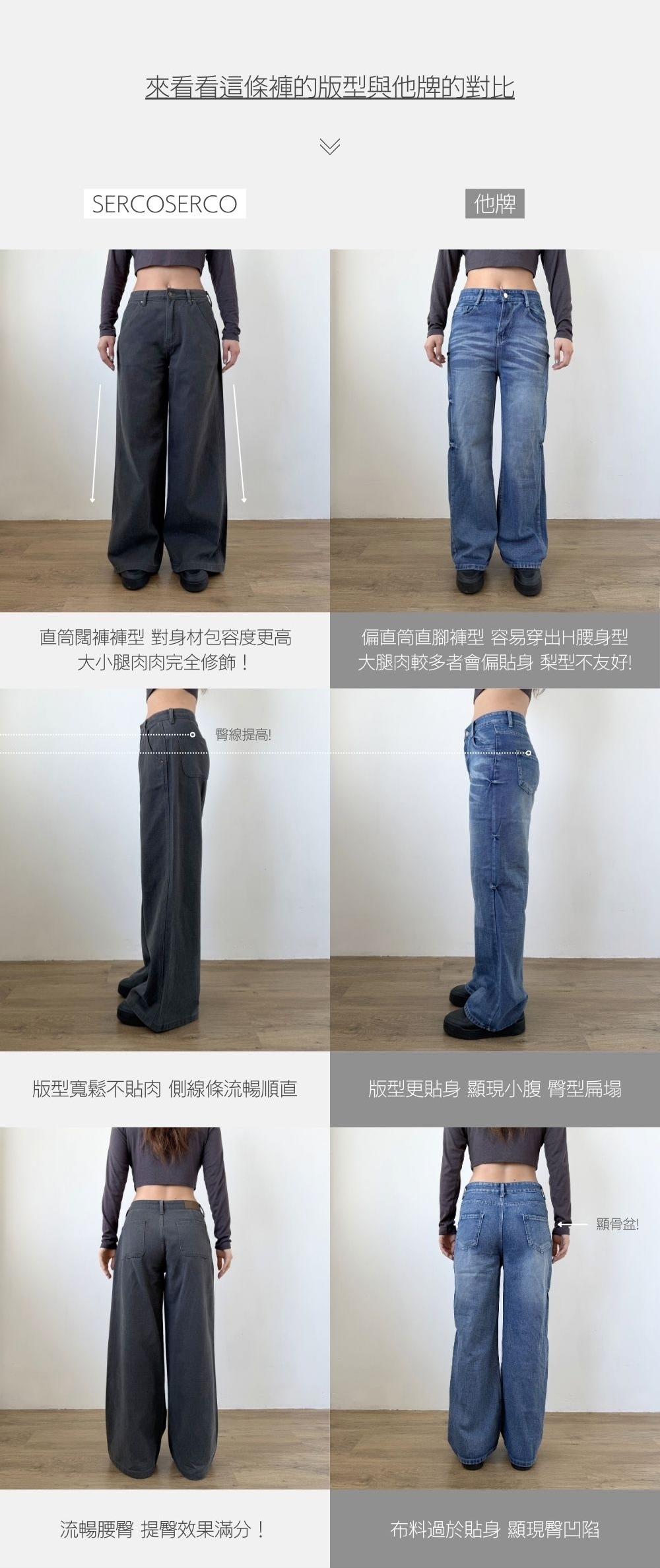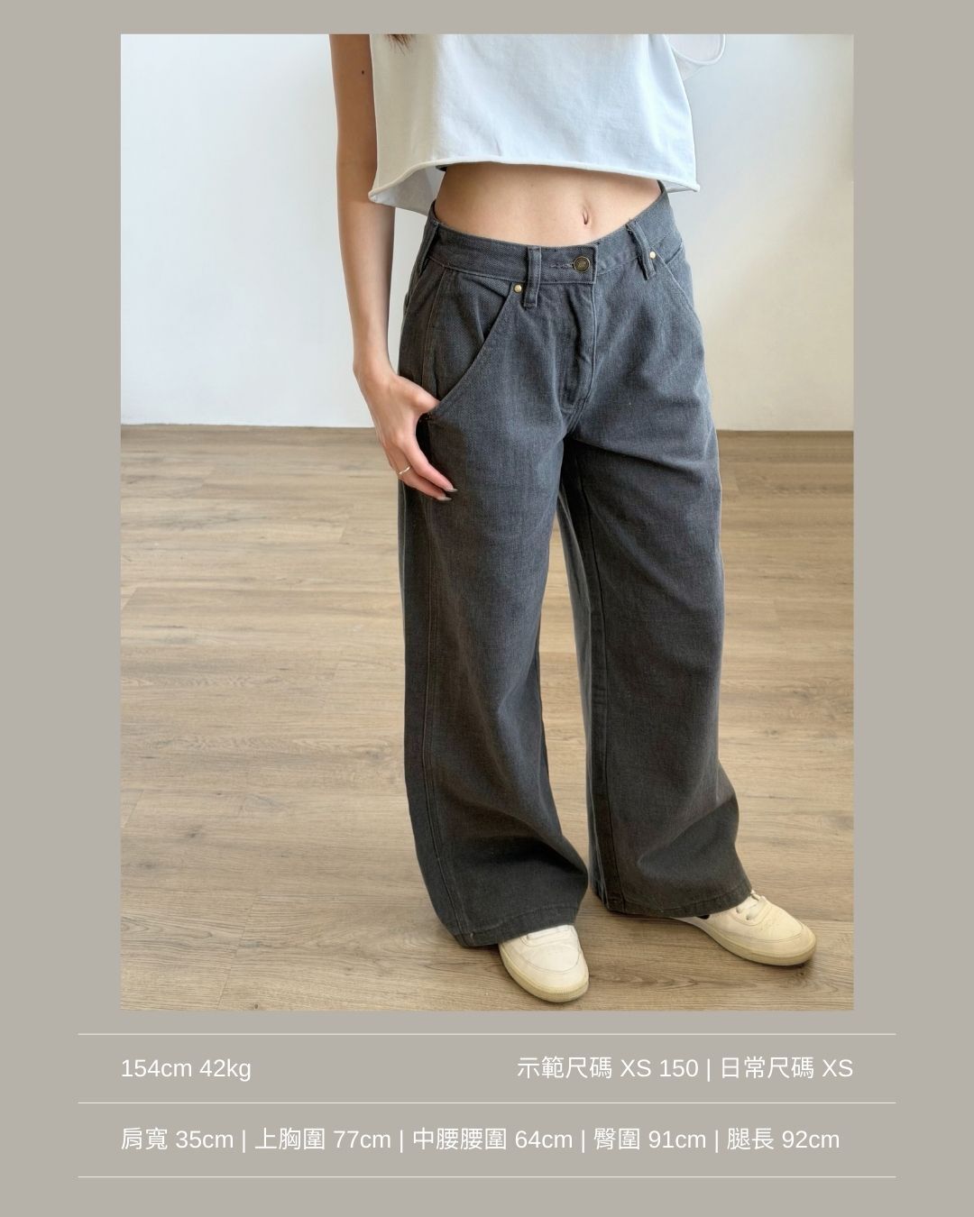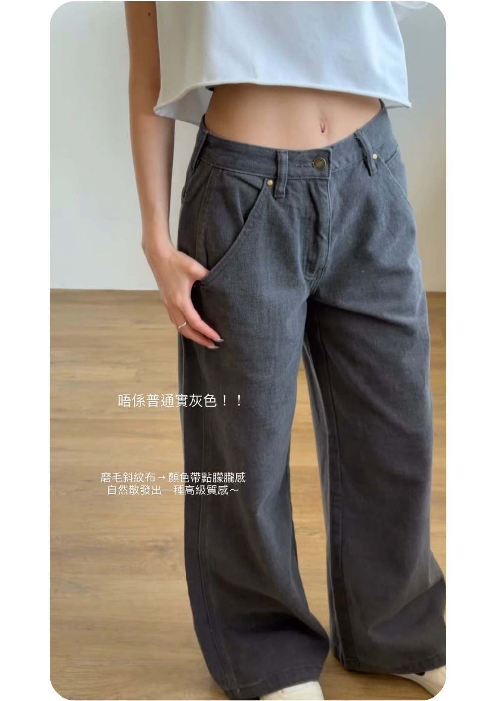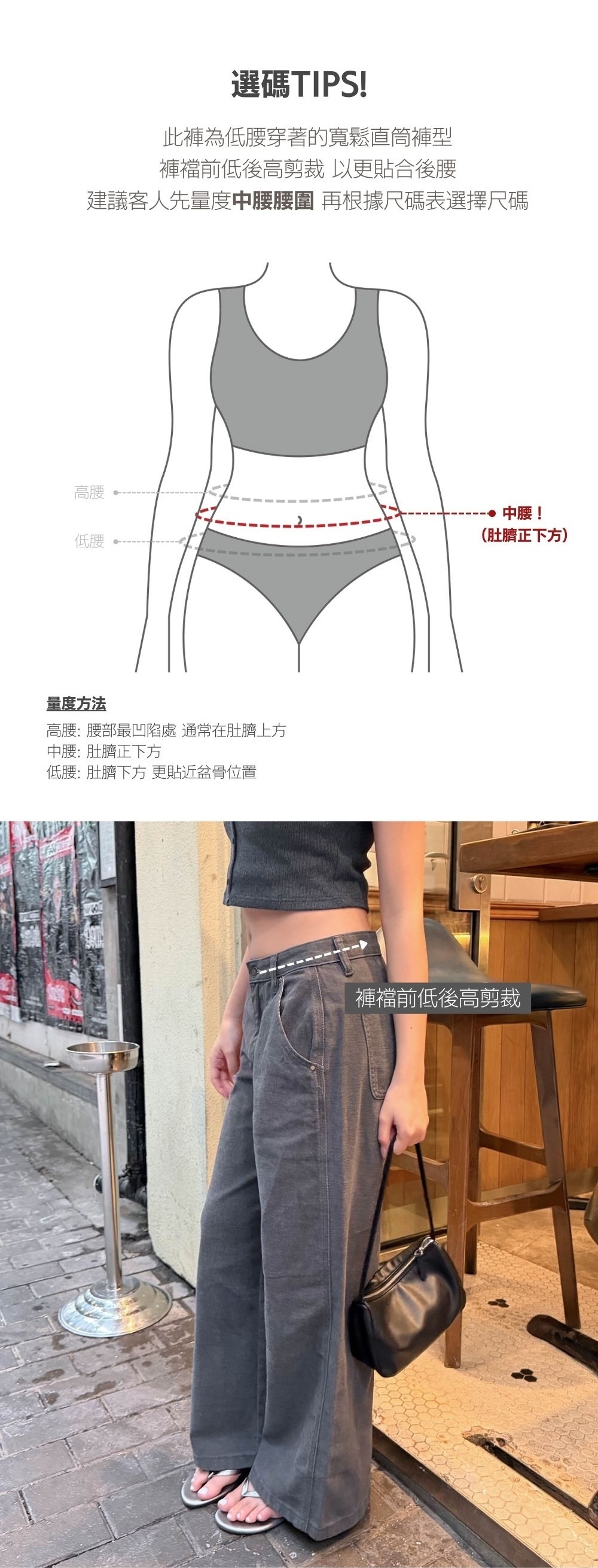 中低腰穿著 / 寬鬆直筒褲型 / 修飾胯寬 / 提臀效果 / 顯腿直