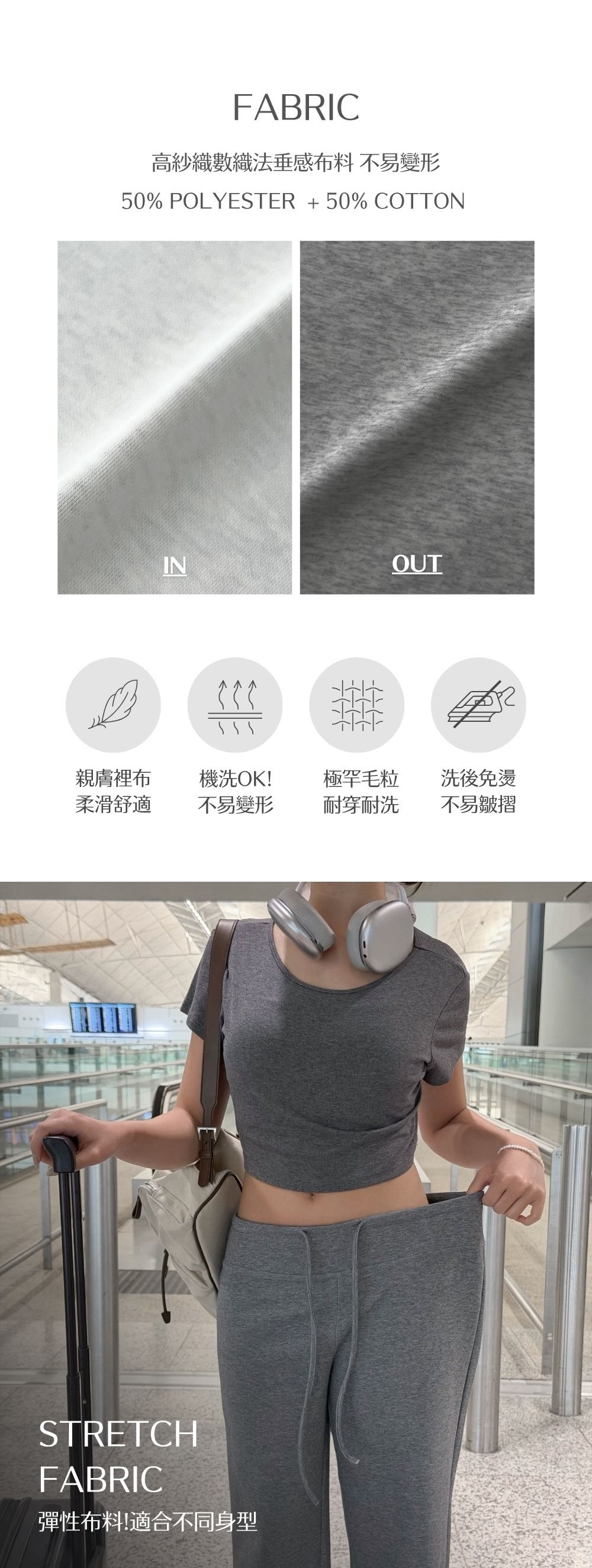 中等偏薄 / 高紗織數編織垂感布料 / 柔滑親膚內裡 /