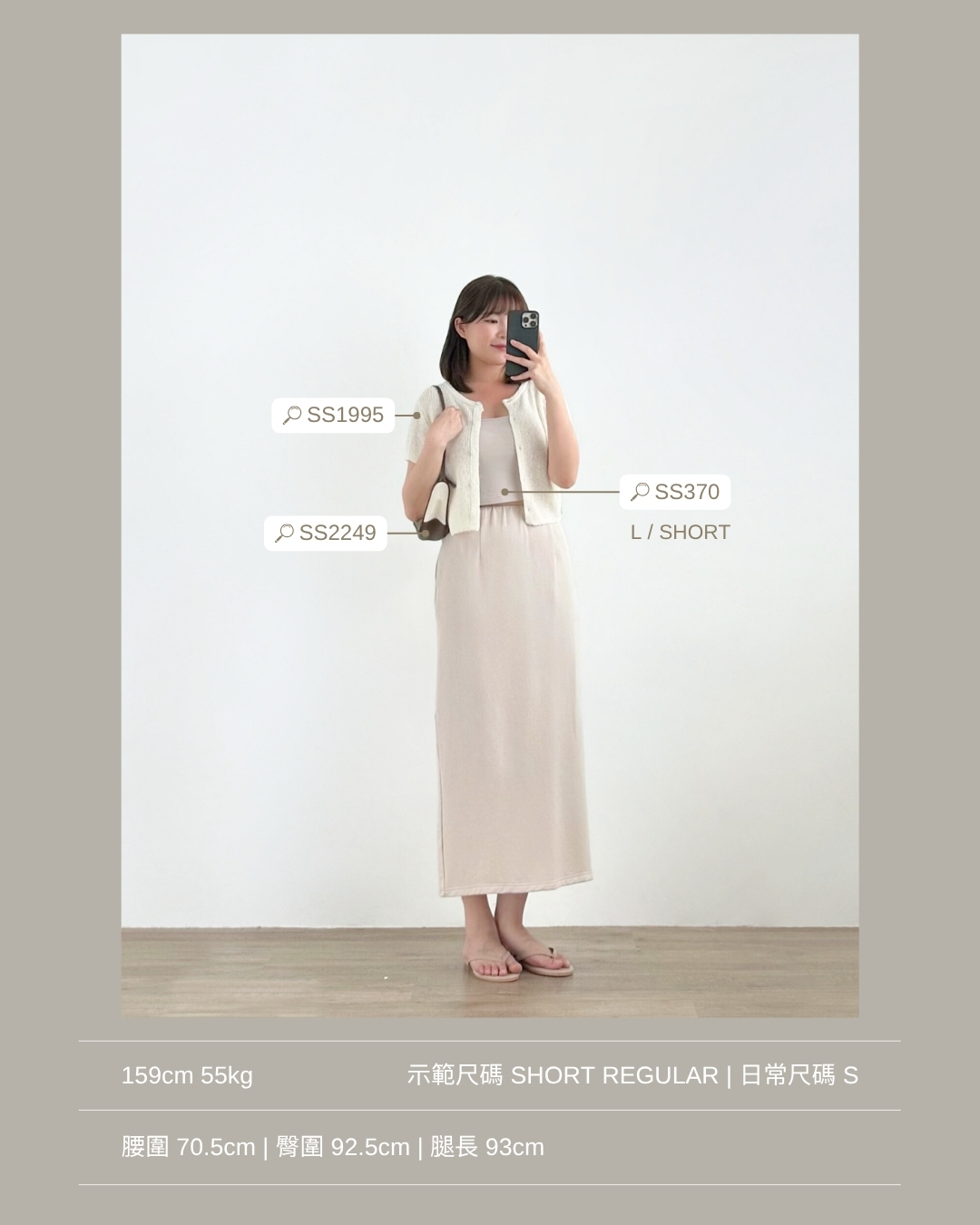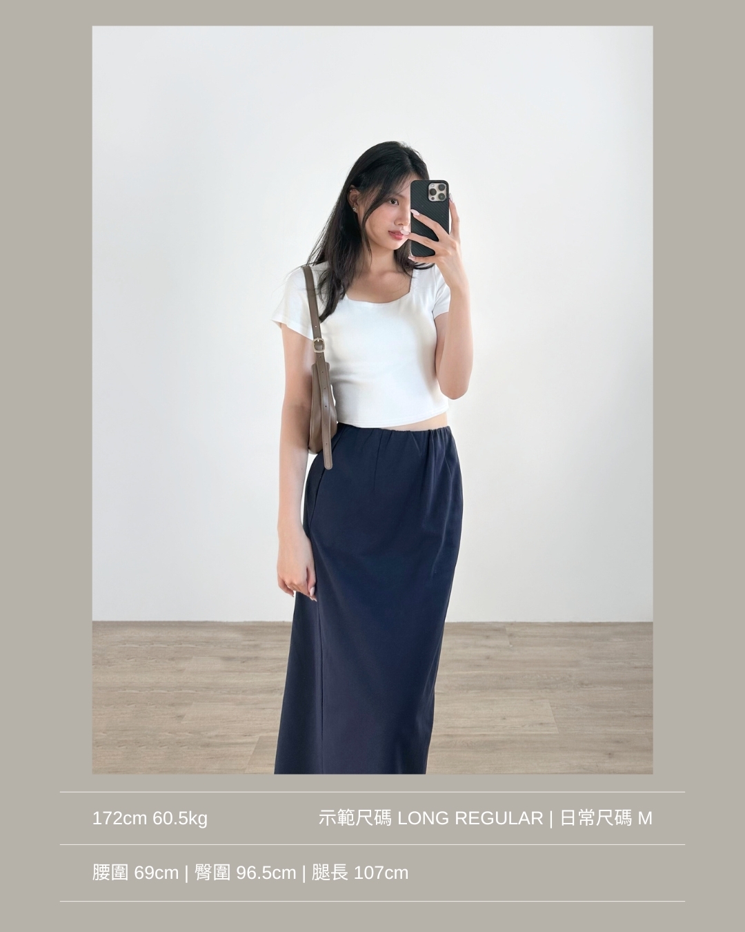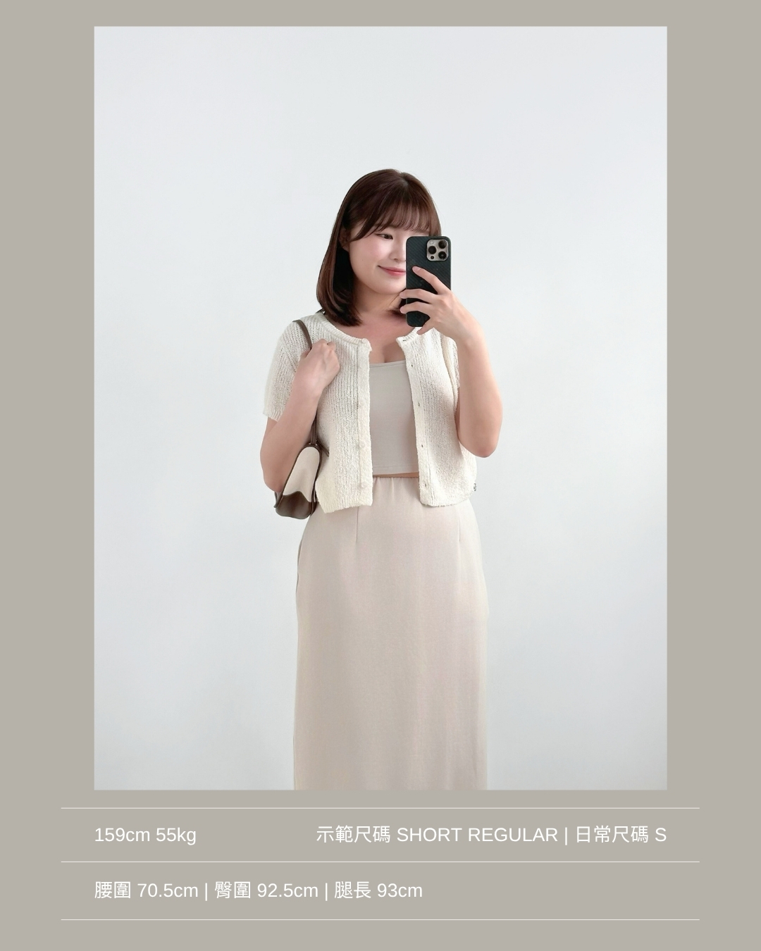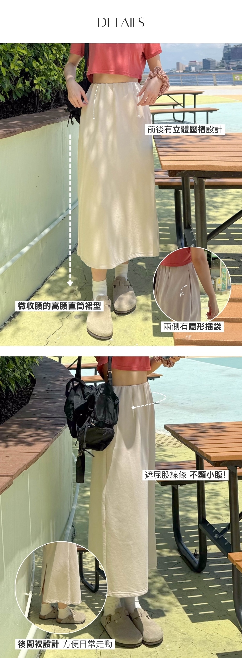 微寬鬆的直筒裙型 前後有立體壓褶✂