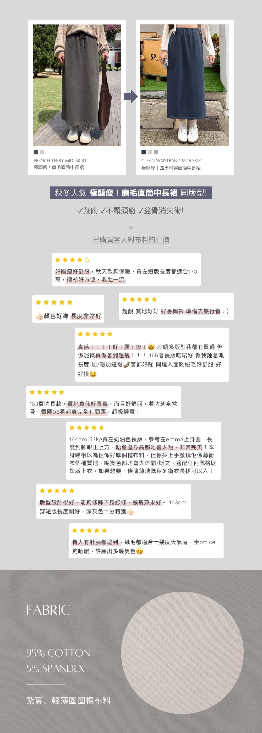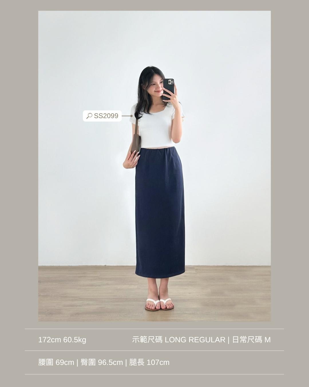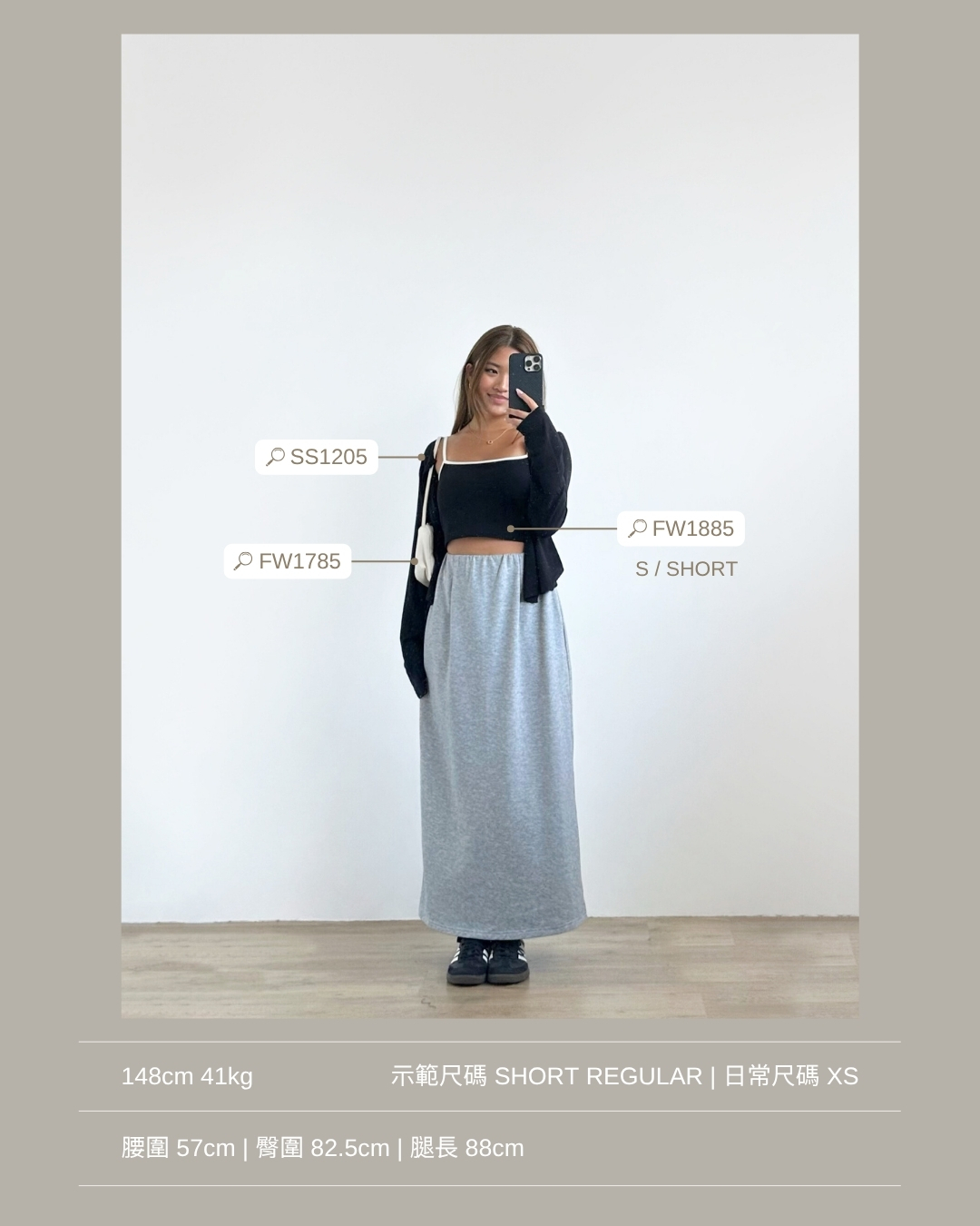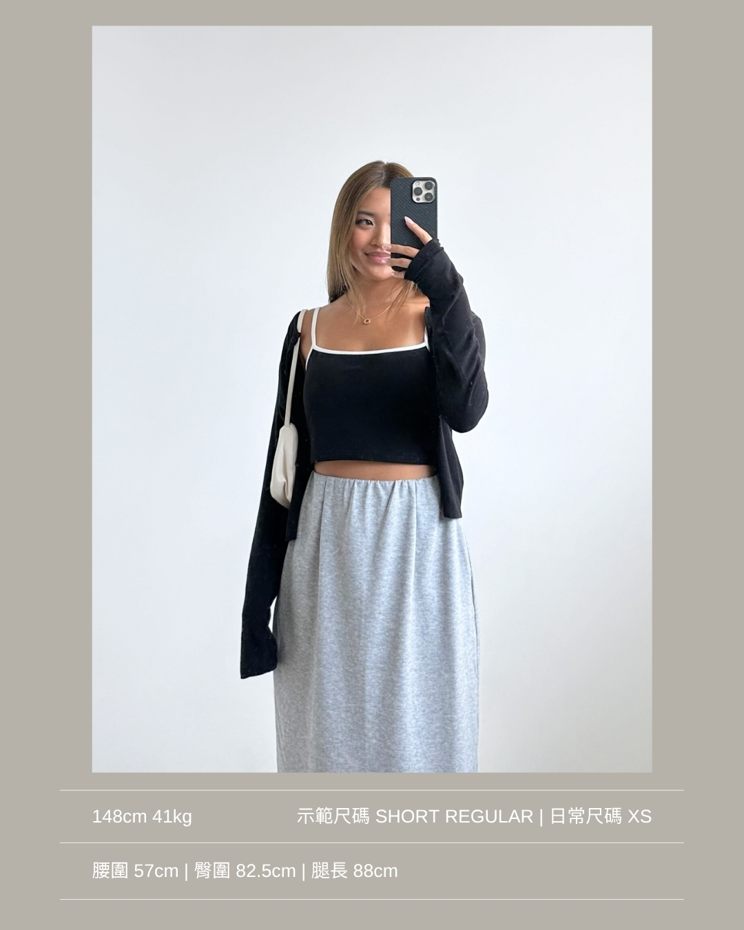 微寬鬆的直筒裙型 前後有立體壓褶✂