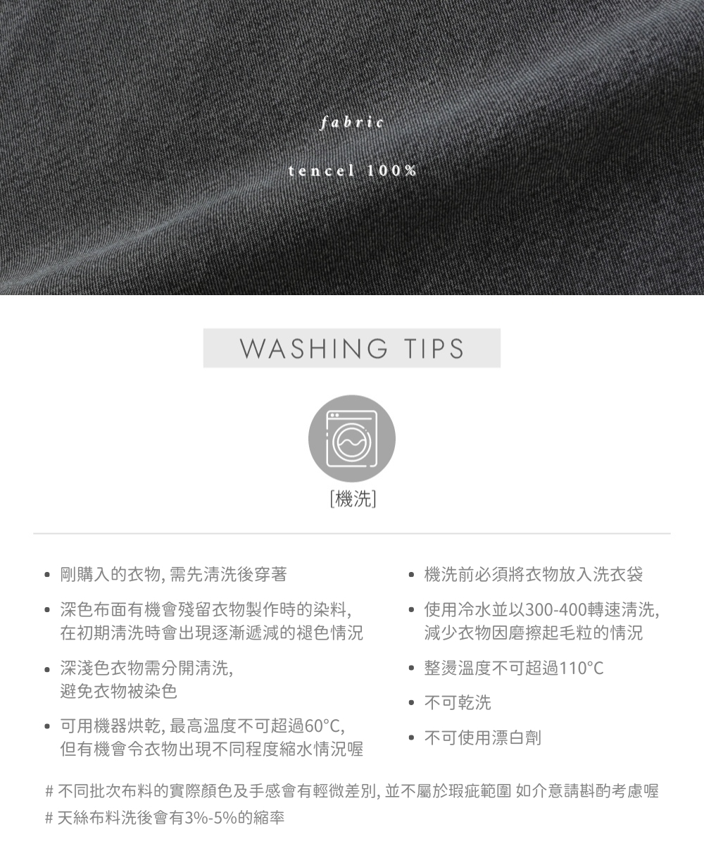 ※ 不同顏色的洗水處理方法不一,深牛仔色布料手感會相對紮實及立挺