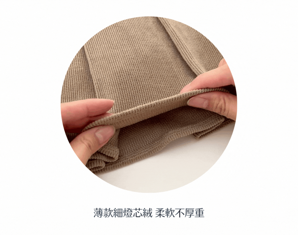 薄款 / 微彈性燈芯絨材質 / 彈性打底褲 / 腰側拉鏈開合 / 內有掛耳方便晾曬 / 秋冬春可穿