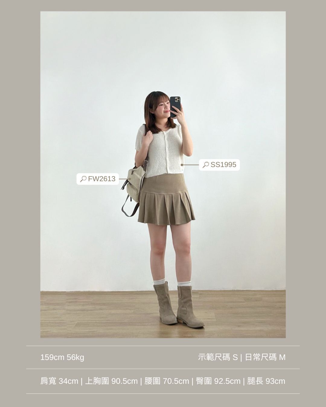A傘百褶裙型 / 高腰穿著 / 不顯臀型 / 修飾假胯寬 / 顯腿長