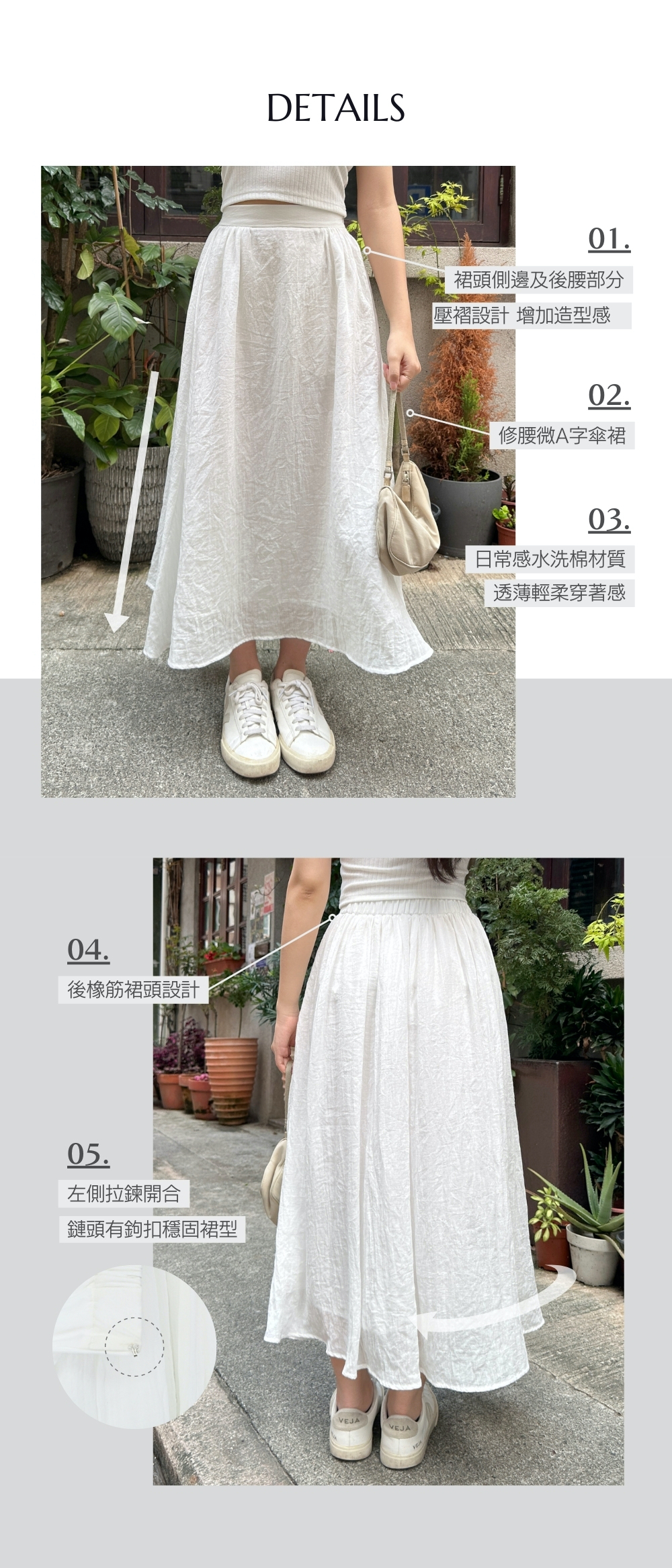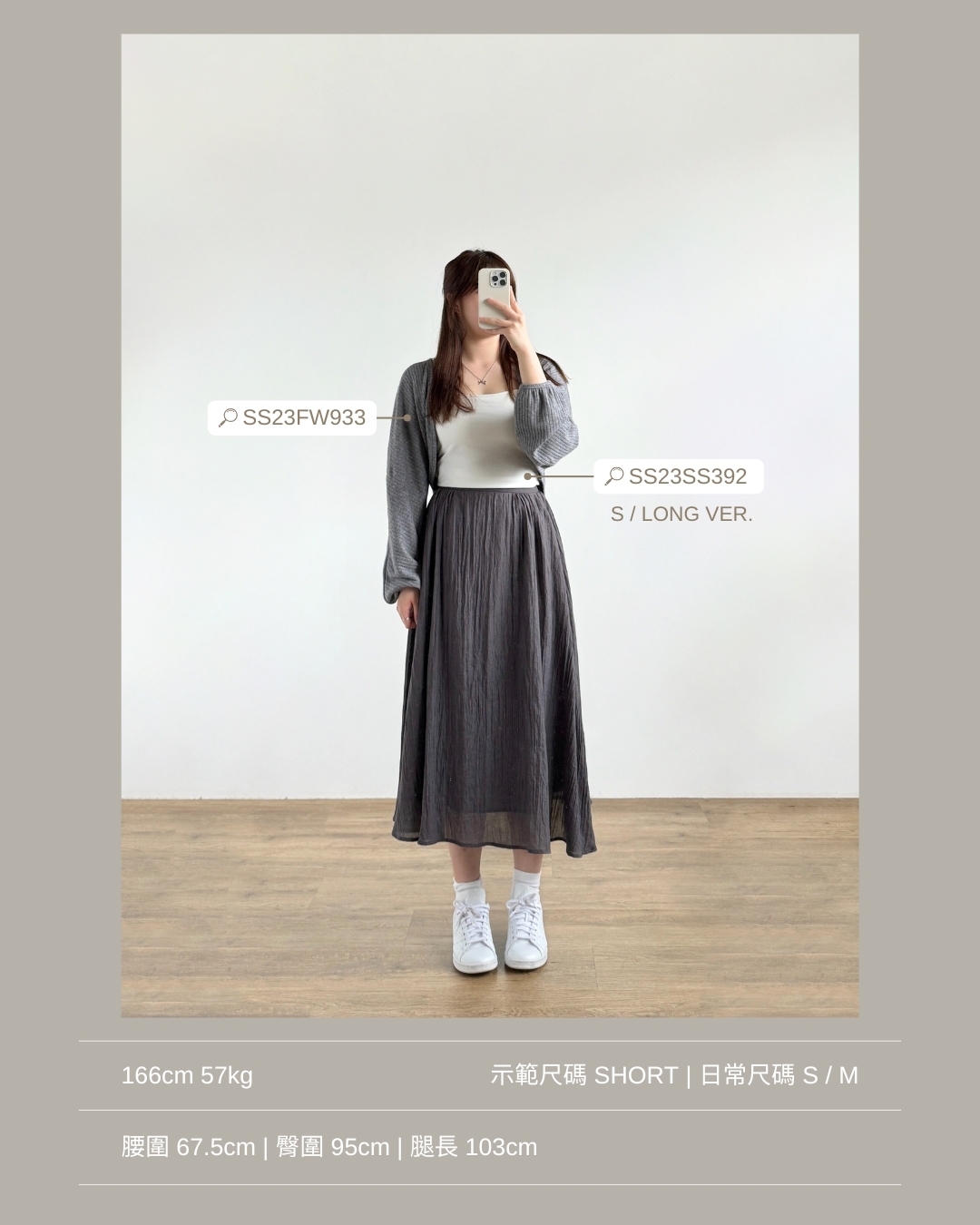⋄ 只有裙頭側邊及後腰部分有抽褶