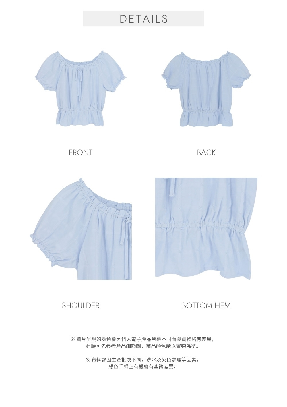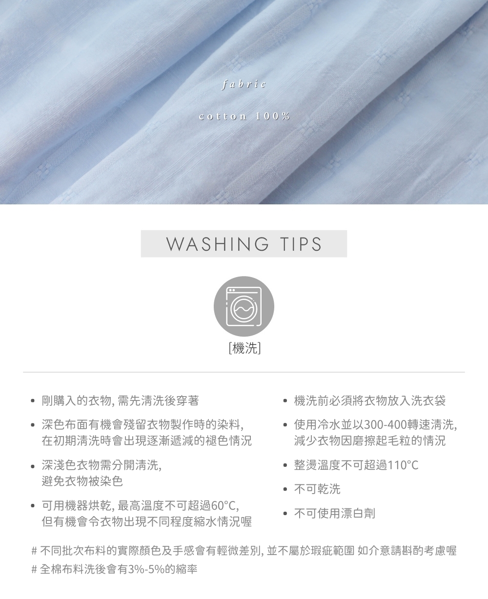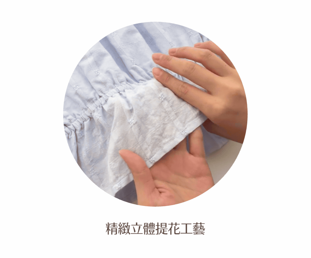 薄款 / 100%全棉質地 / 精緻立體提花工藝 / 橡筋縮皺衣領及腰圍 /