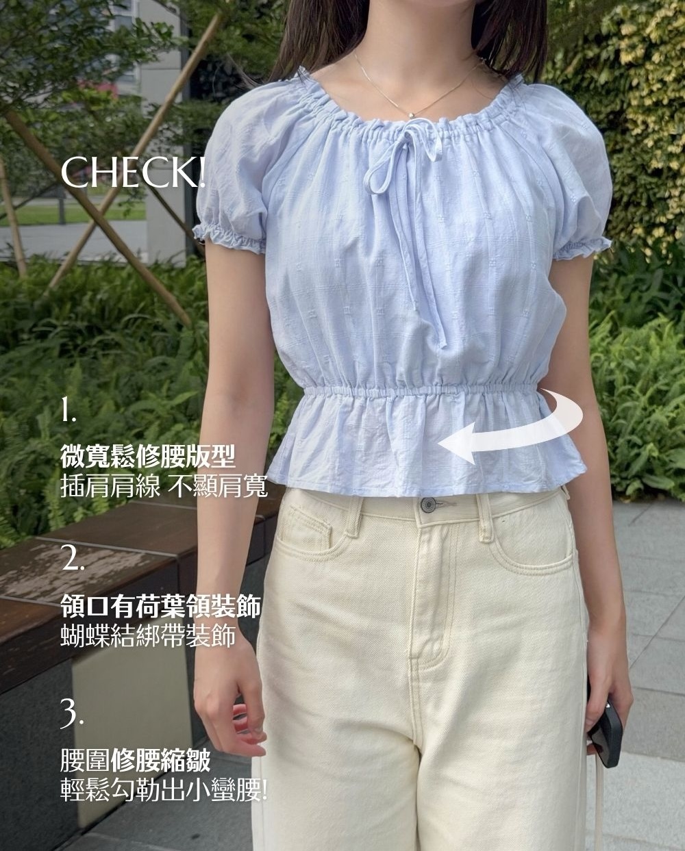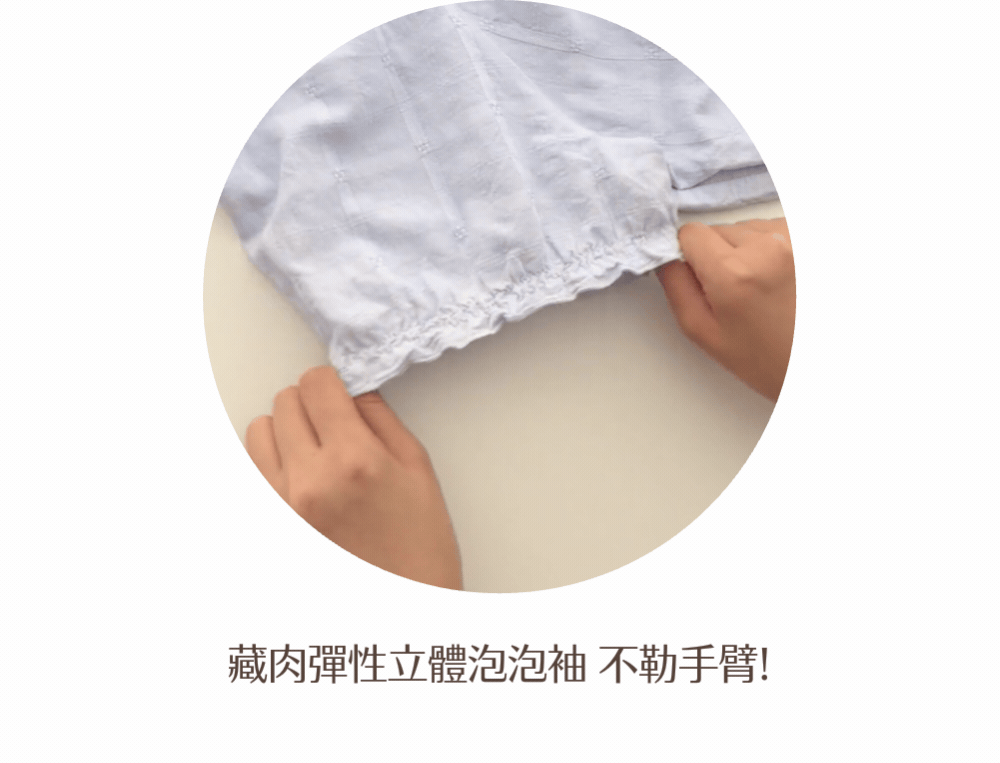 微寬鬆修腰版型 / 插肩肩線 / 不顯肩寬 / 藏肉的立體泡泡袖