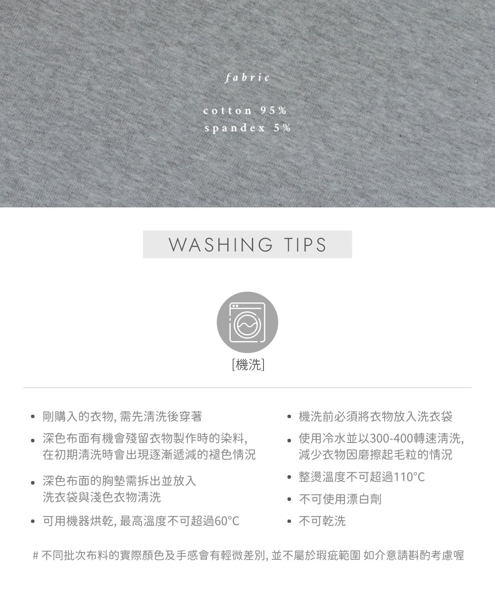 ⋄ 內搭為合身微入肩長版 內附麻糬胸墊
