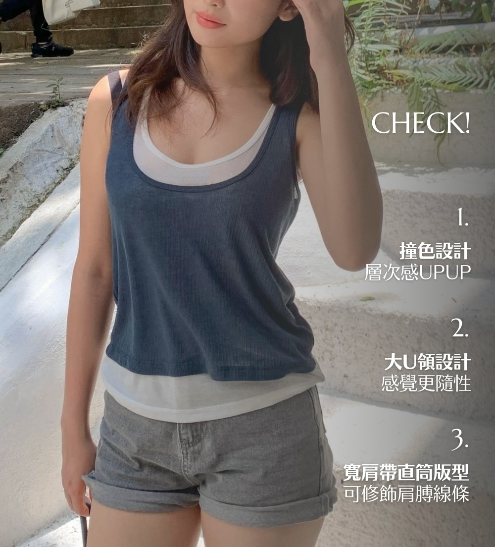 內搭背心的撞色設計 能提高穿搭的層次感喔🦕🤍