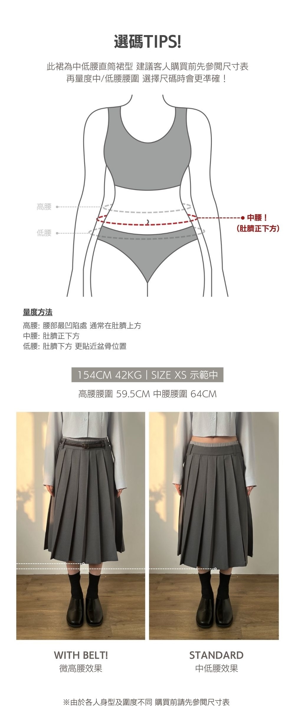 中低腰直筒裙型 / 中長裙長 / 全橡筋腰拼色腰級 /