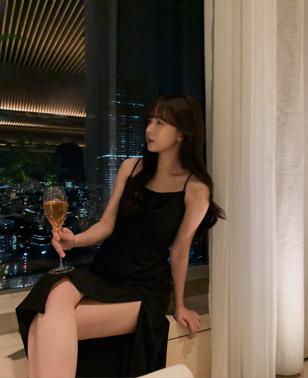 外層是優雅的垂墜領口、裡面那層可以緊緊貼着胸口