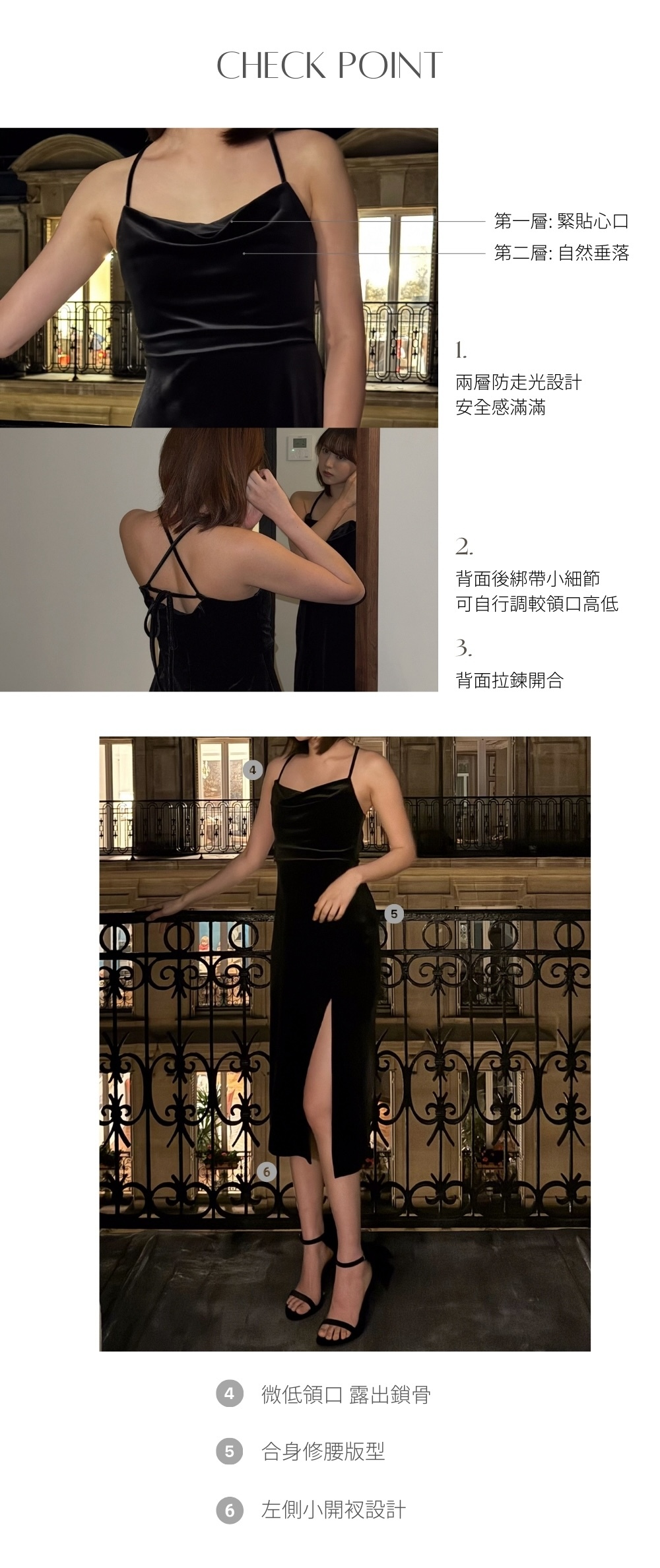 外層是優雅的垂墜領口、裡面那層可以緊緊貼着胸口