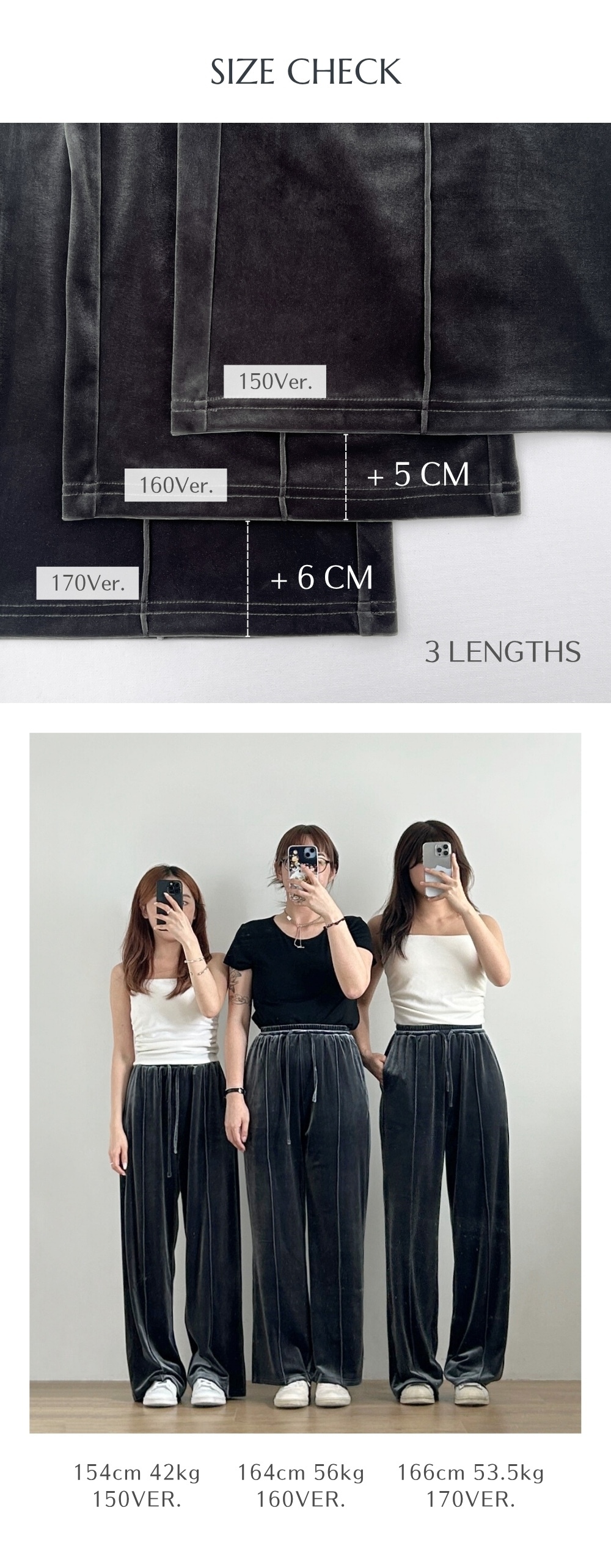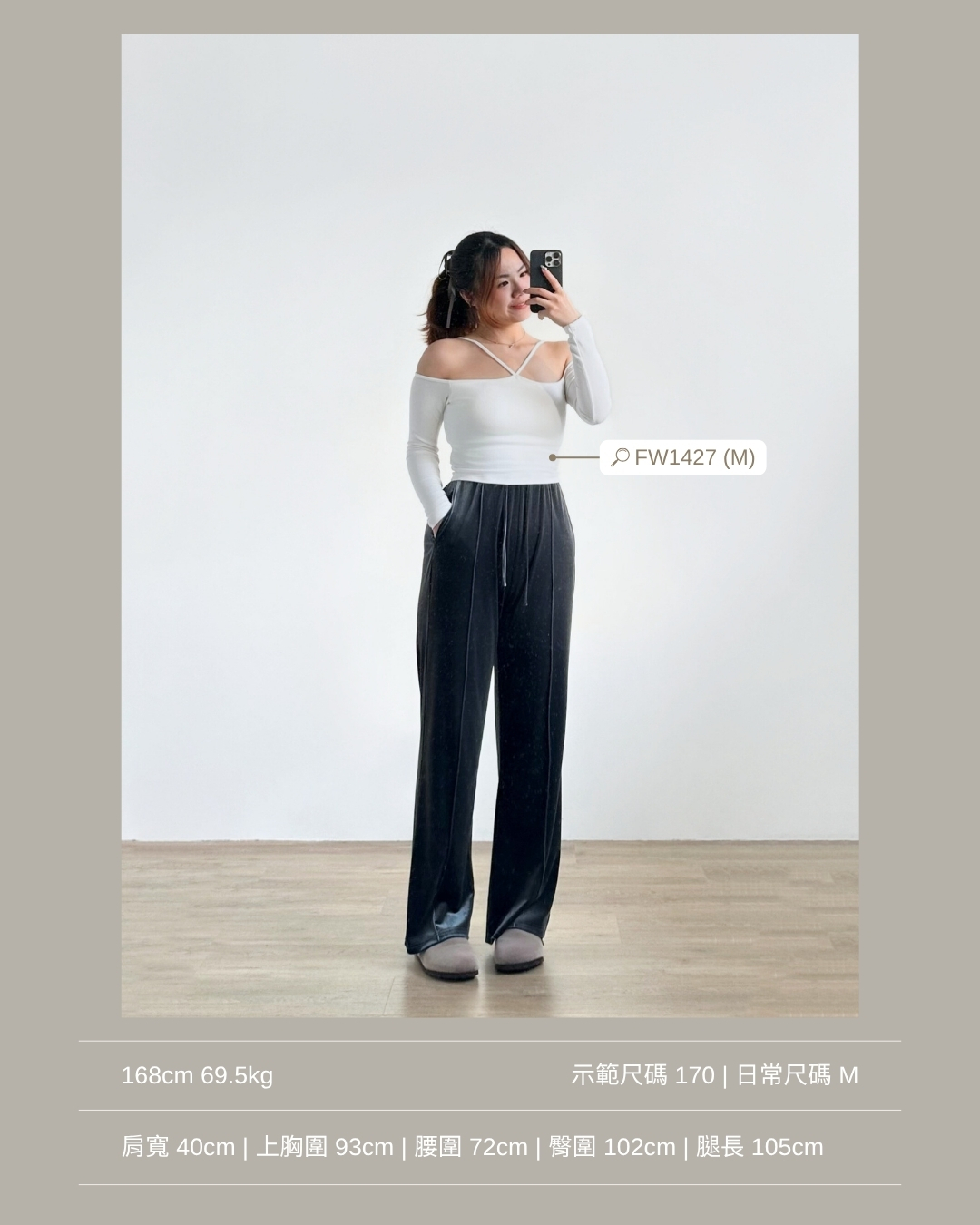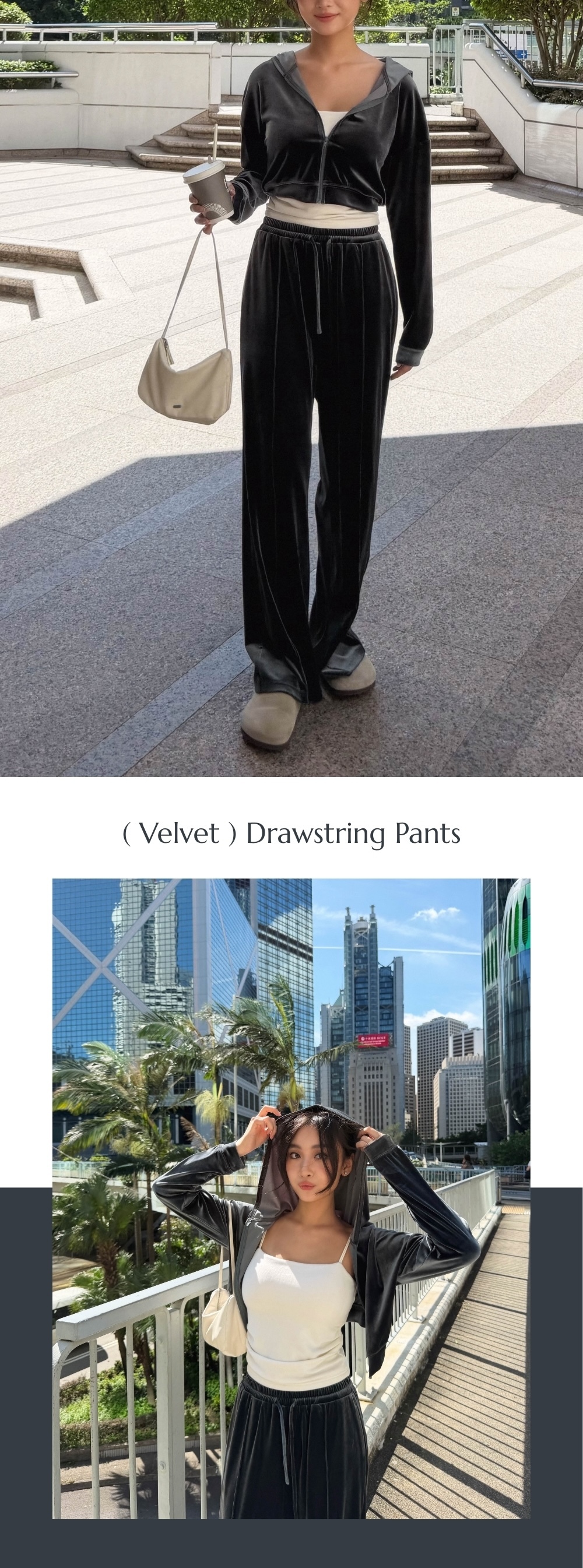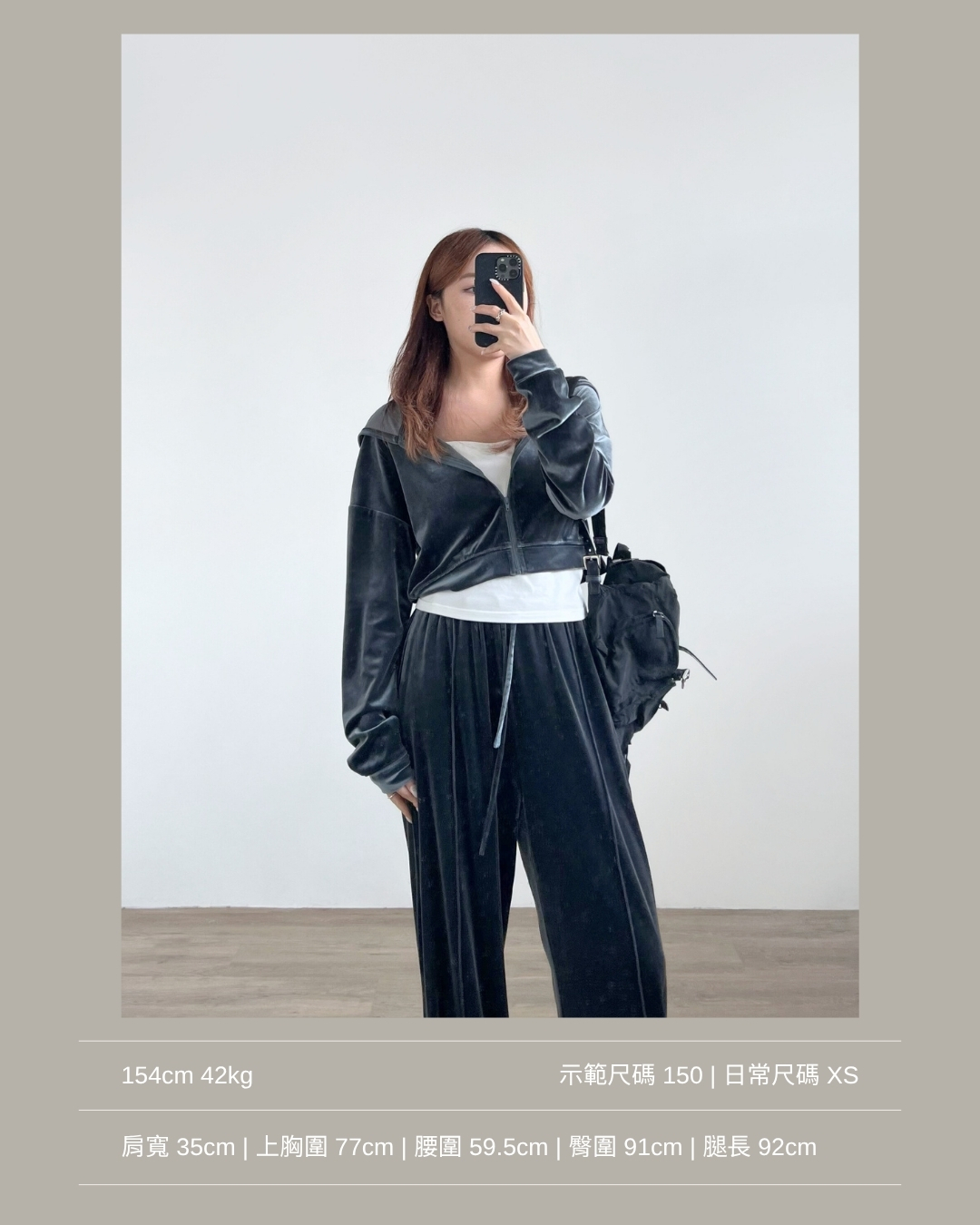 薄款 / 垂感薄絲絨材質 / 洗後免整燙 / 秋冬春可穿 / 抽繩橡筋腰褲頭