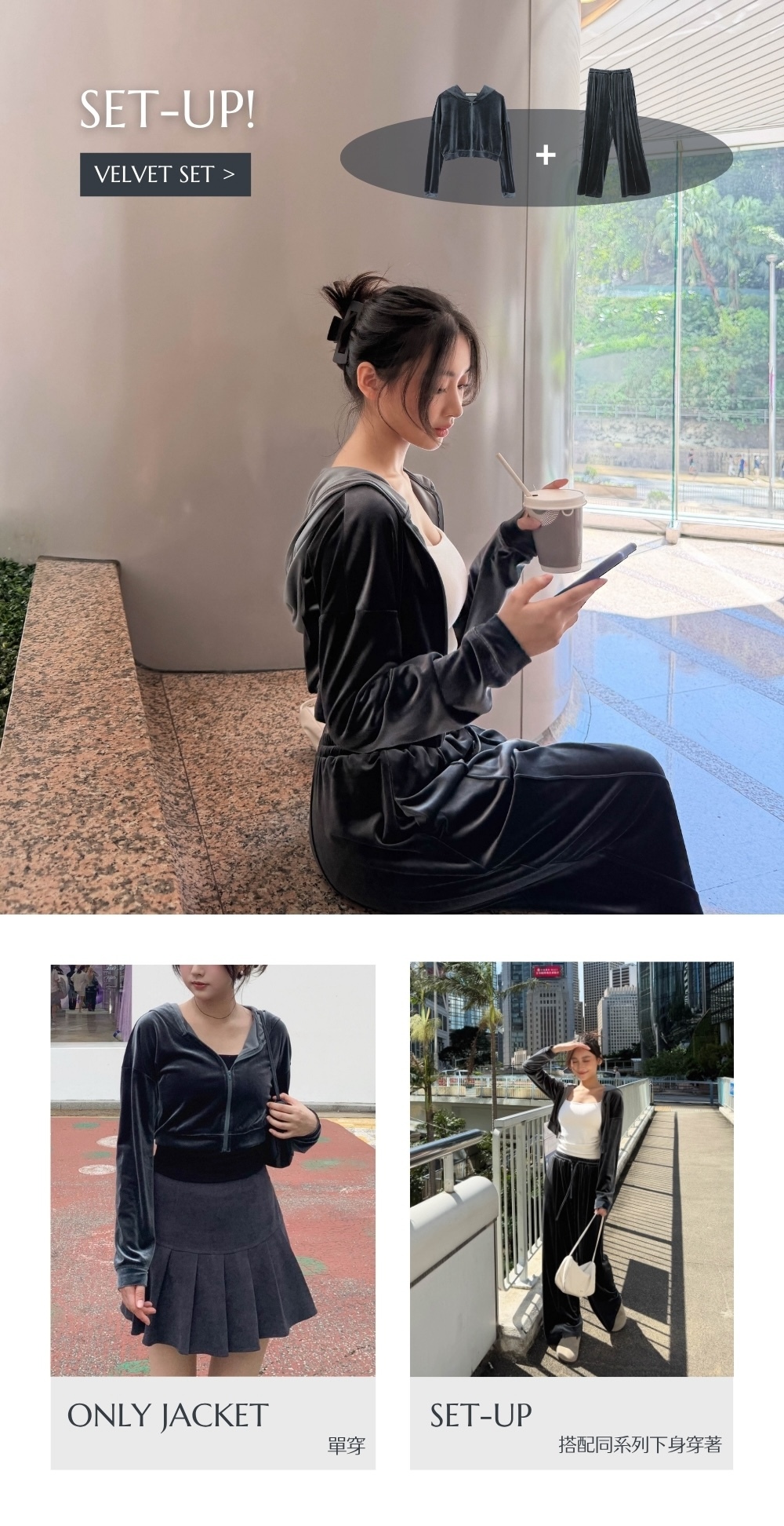 與同系列 [ 質感絲絨拉鏈短版外套 ] 穿著