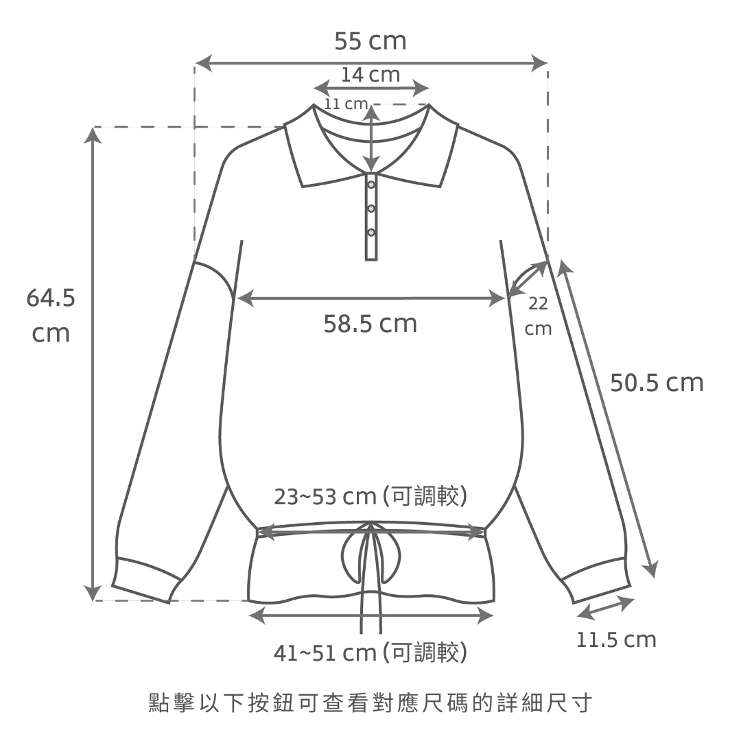 衣尾為橡筋抽繩束腰設計 / 光澤圓鈕點綴