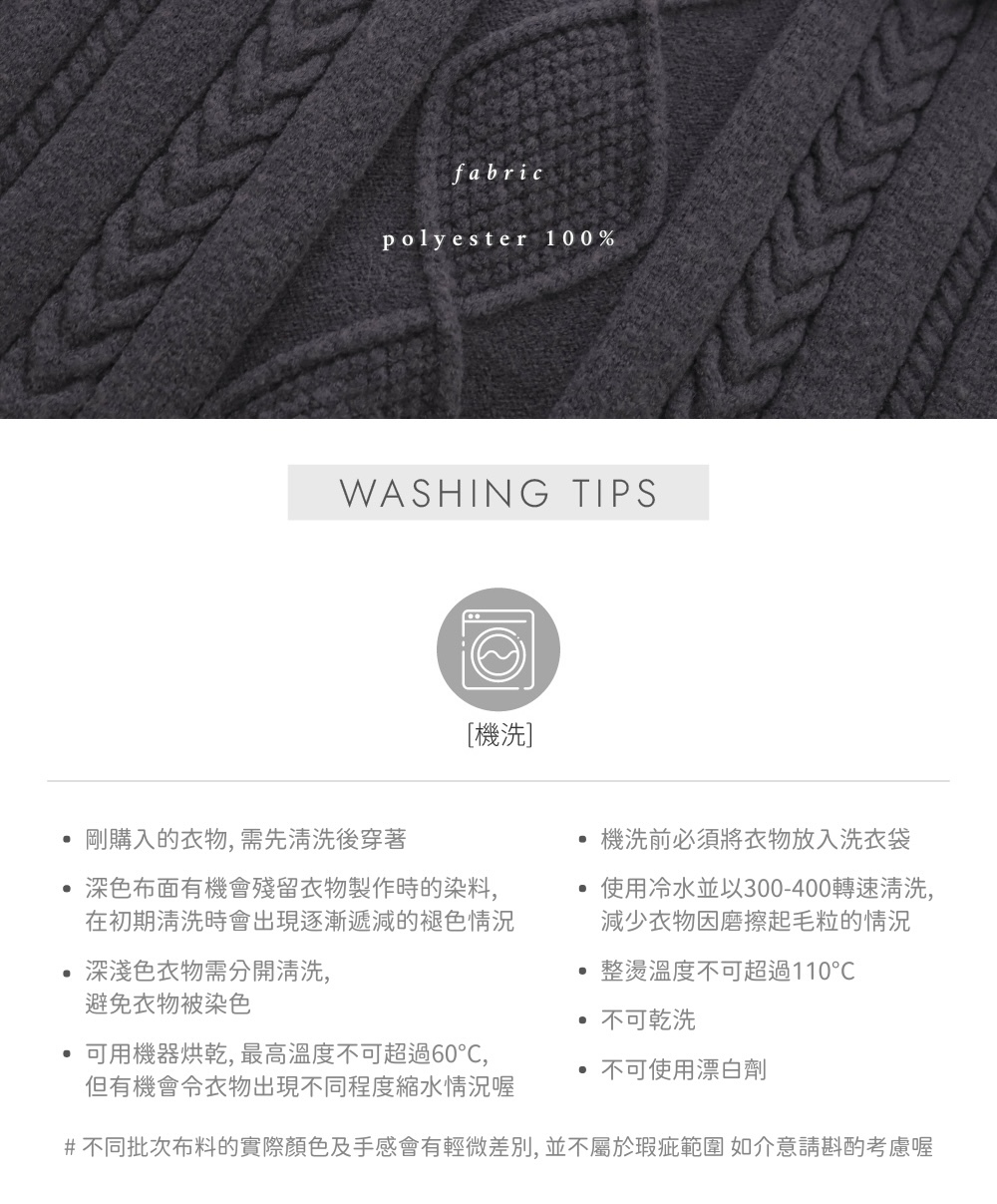 ※ 布料會隨著日常穿著摩擦 / 穿洗次數增加而出現耗損,