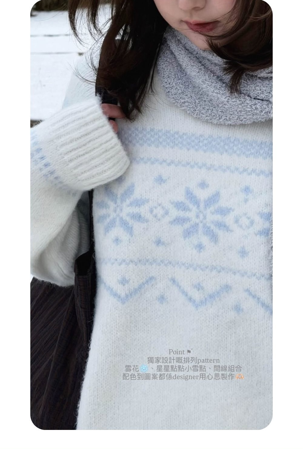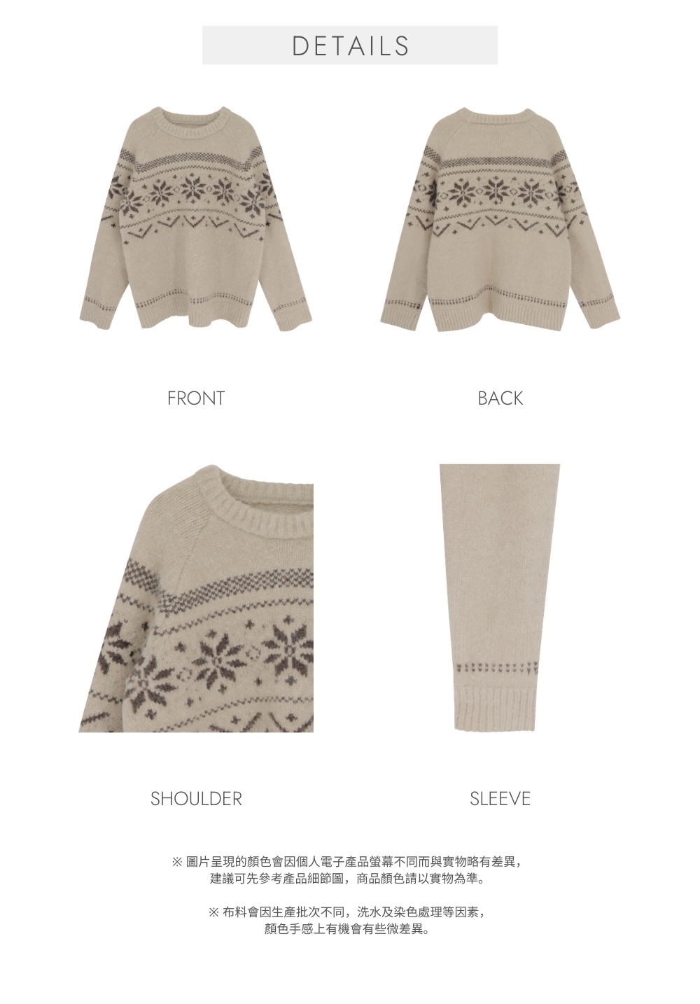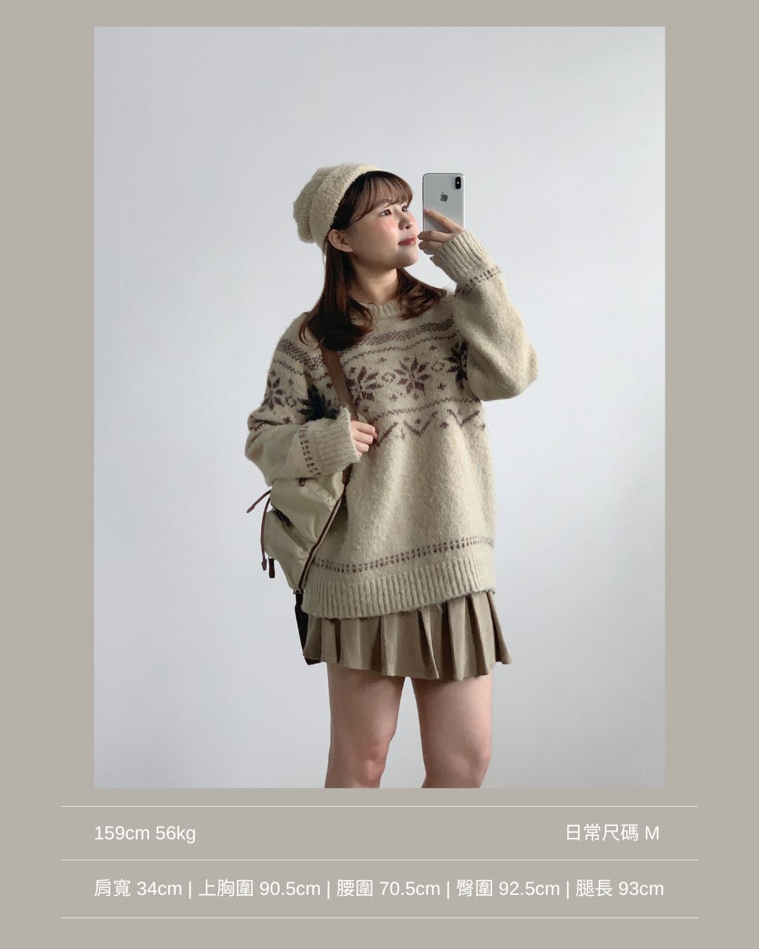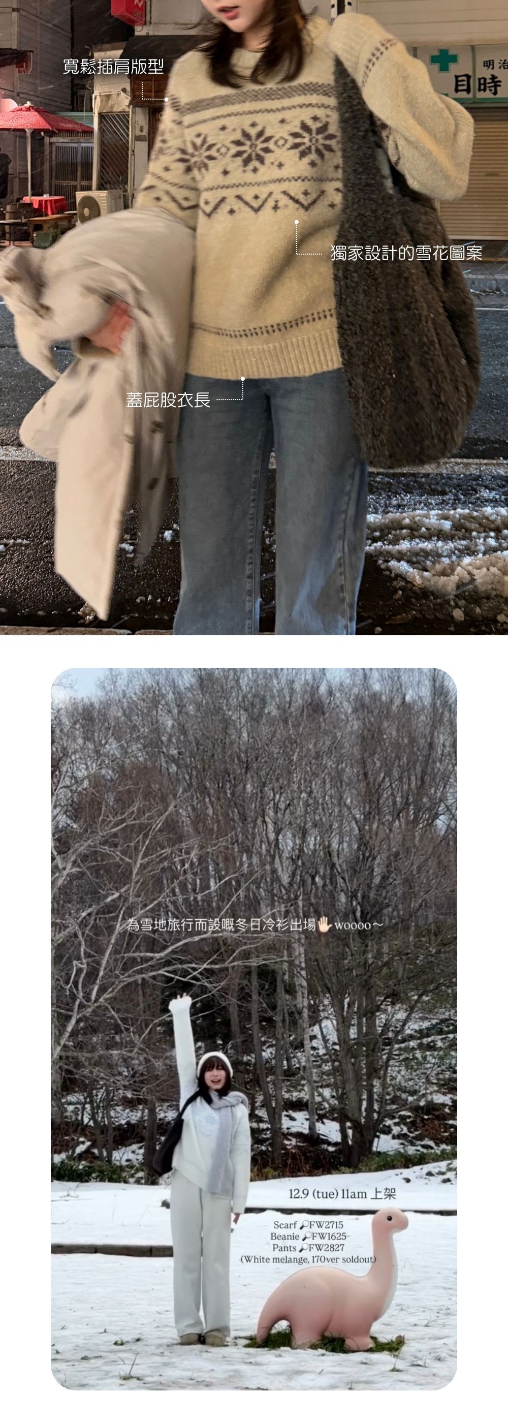寬鬆插肩版型 / 蓋屁股衣長 / 顯直角肩 / 不臃腫 / 獨家設計的雪花圖案