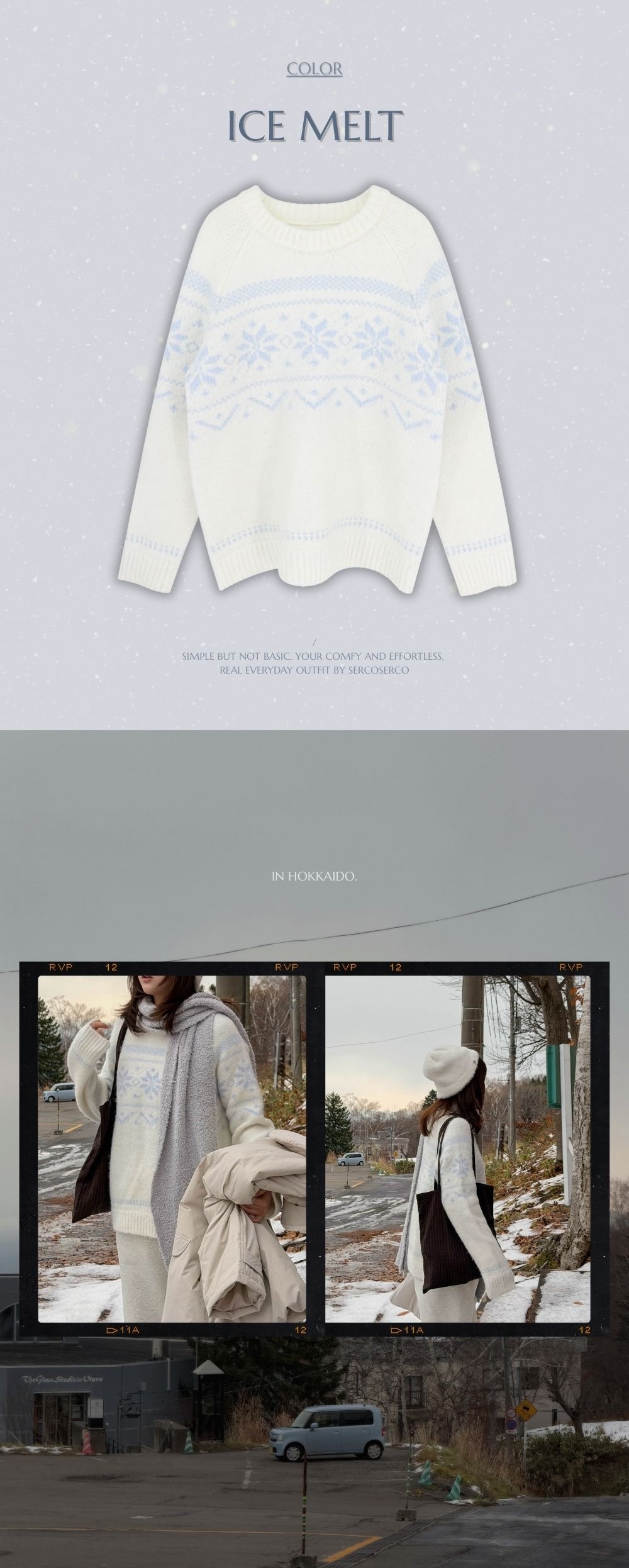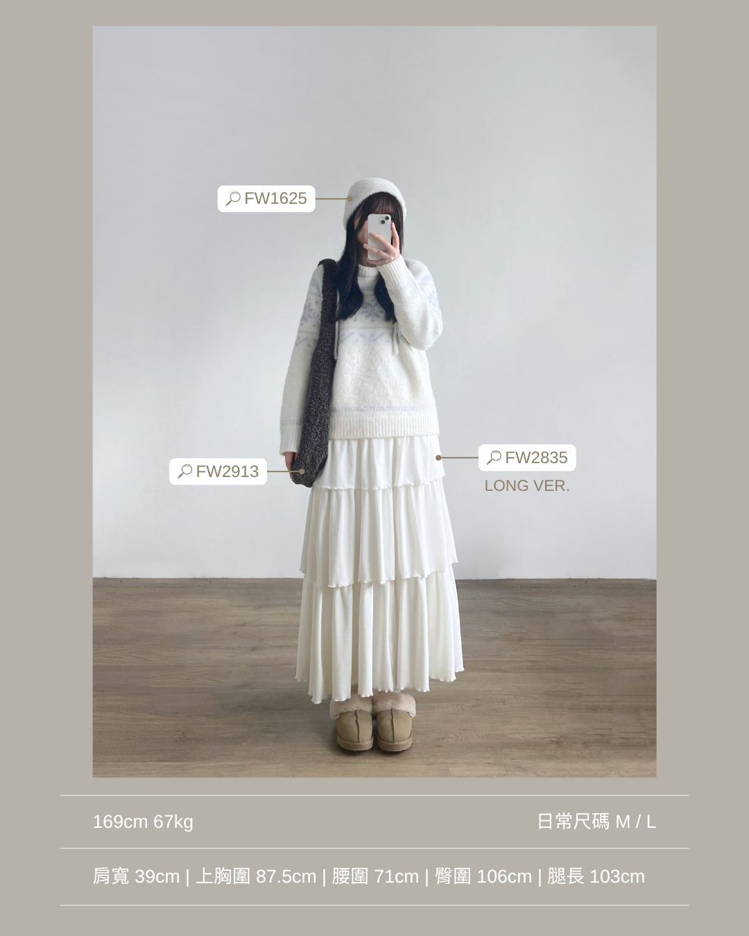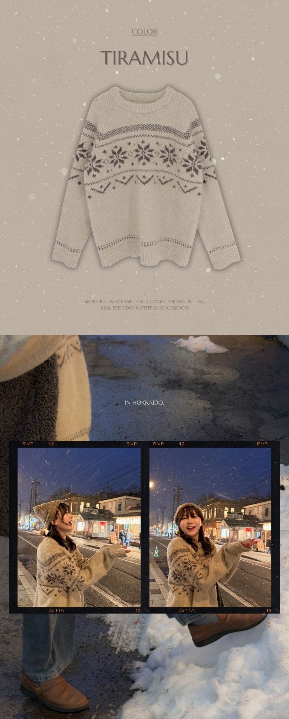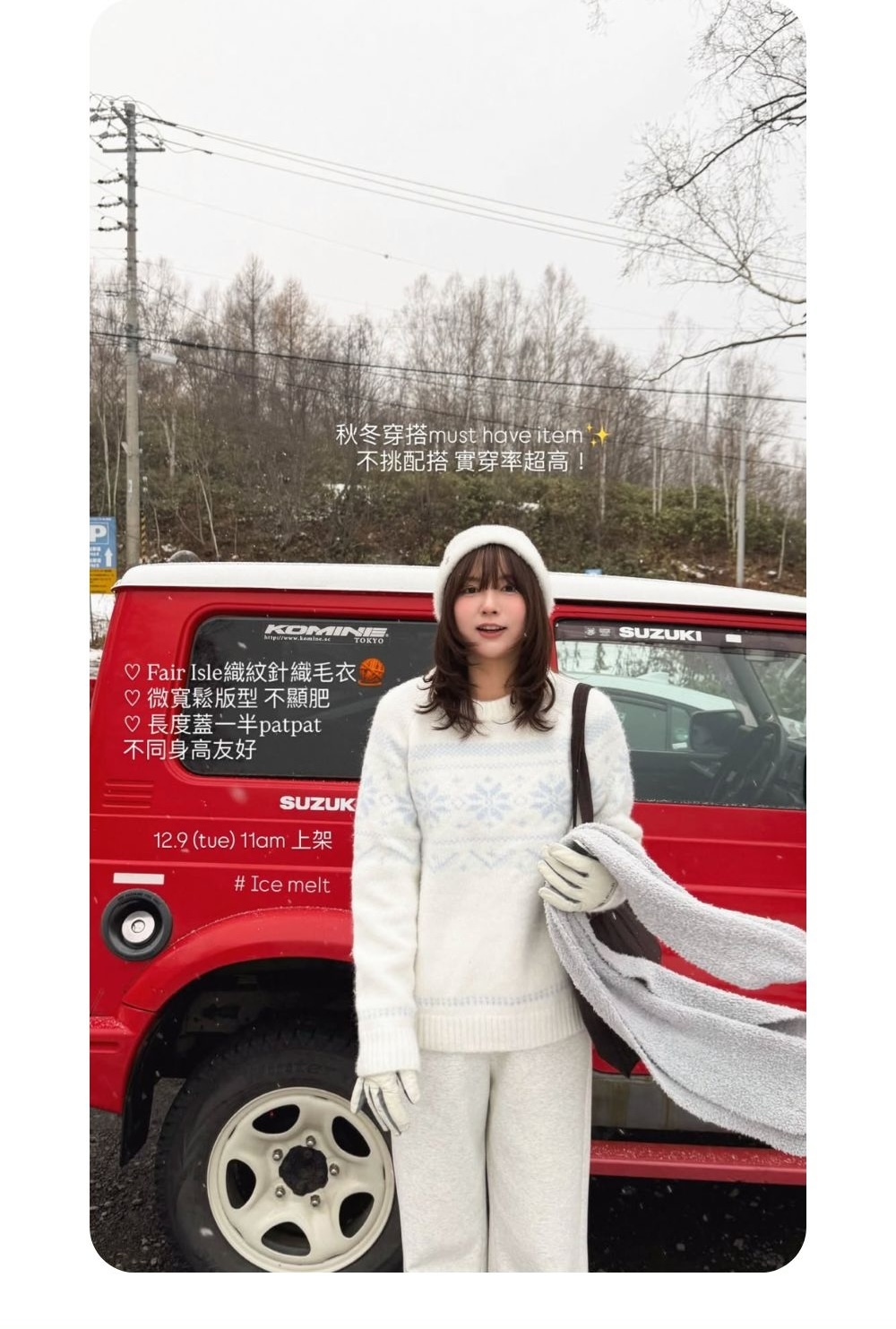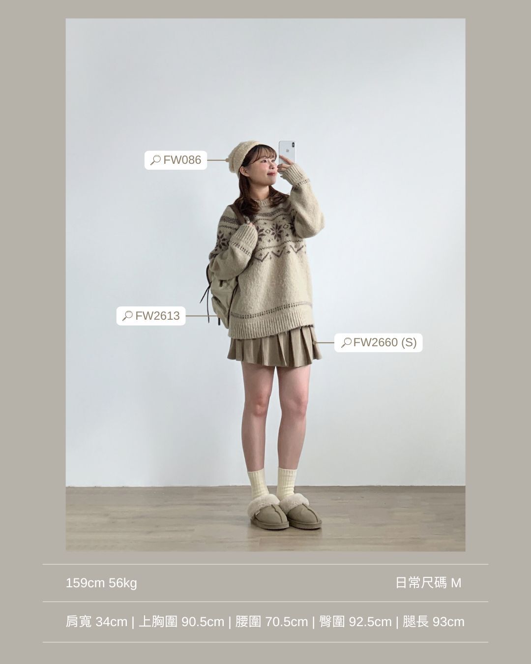 寬鬆插肩版型 / 蓋屁股衣長 / 顯直角肩 / 不臃腫 / 獨家設計的雪花圖案