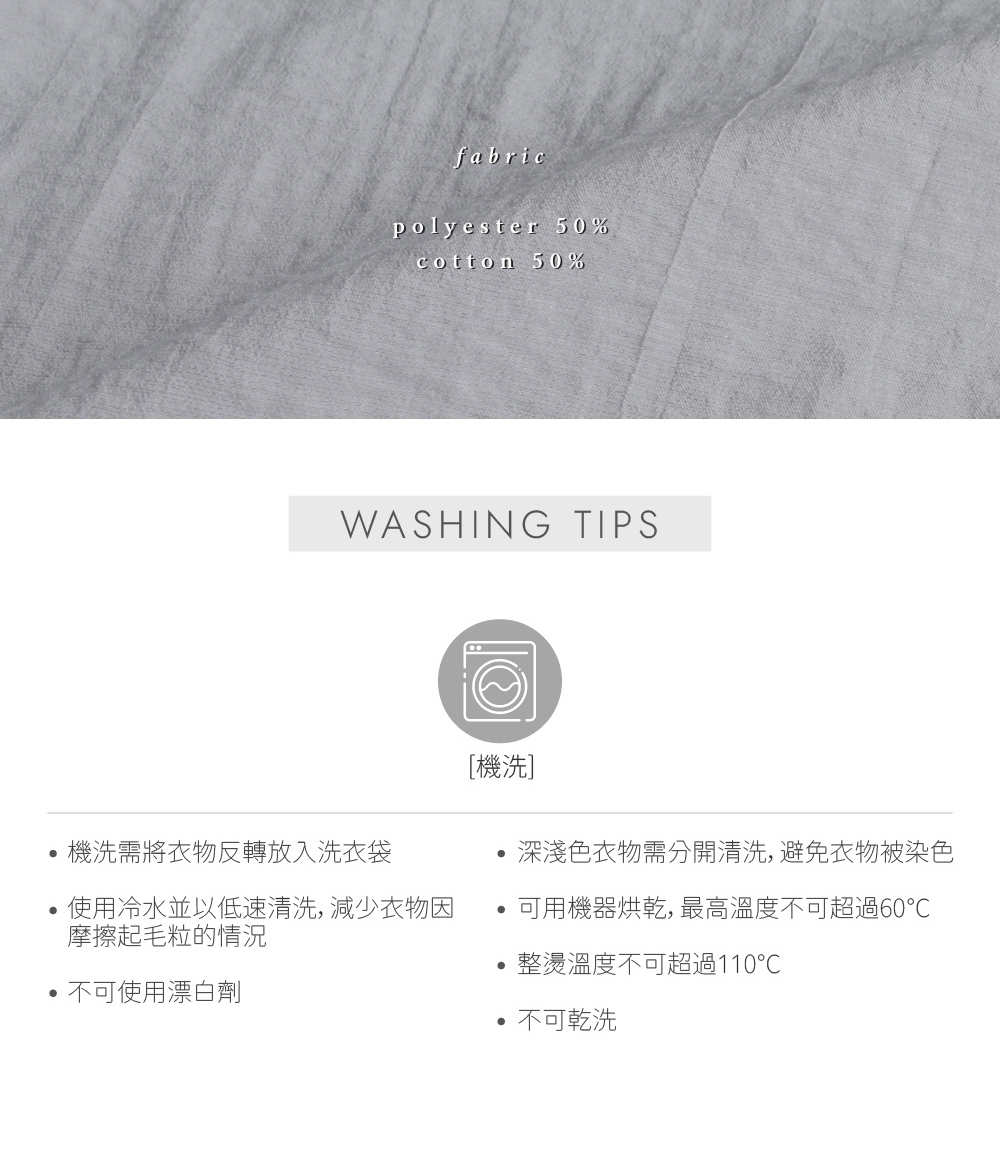 ⋄ 皺感薄棉質布料 不易皺+洗後免燙