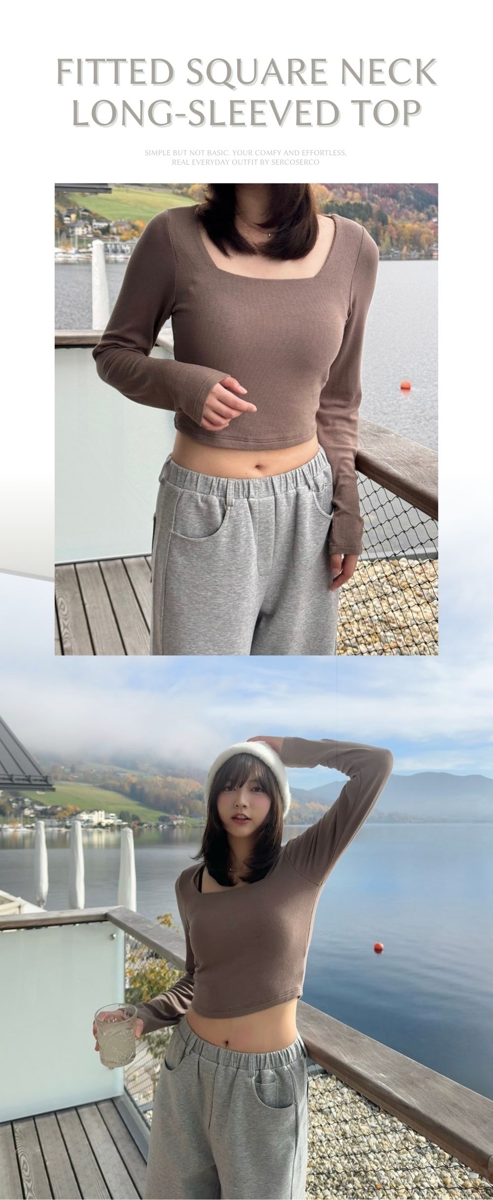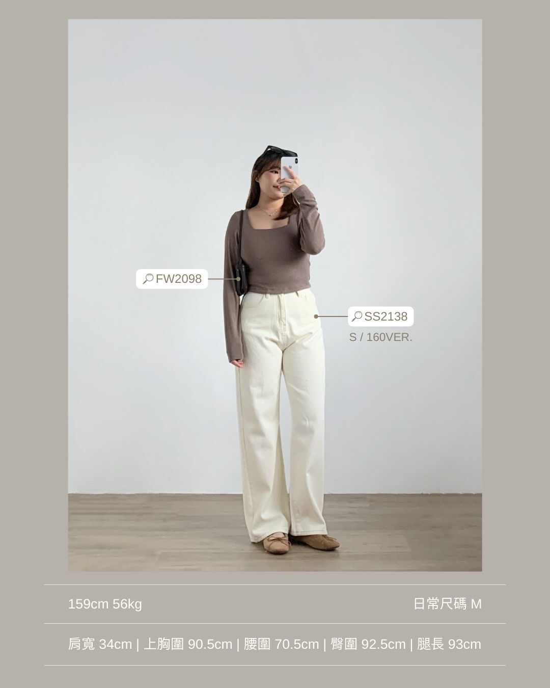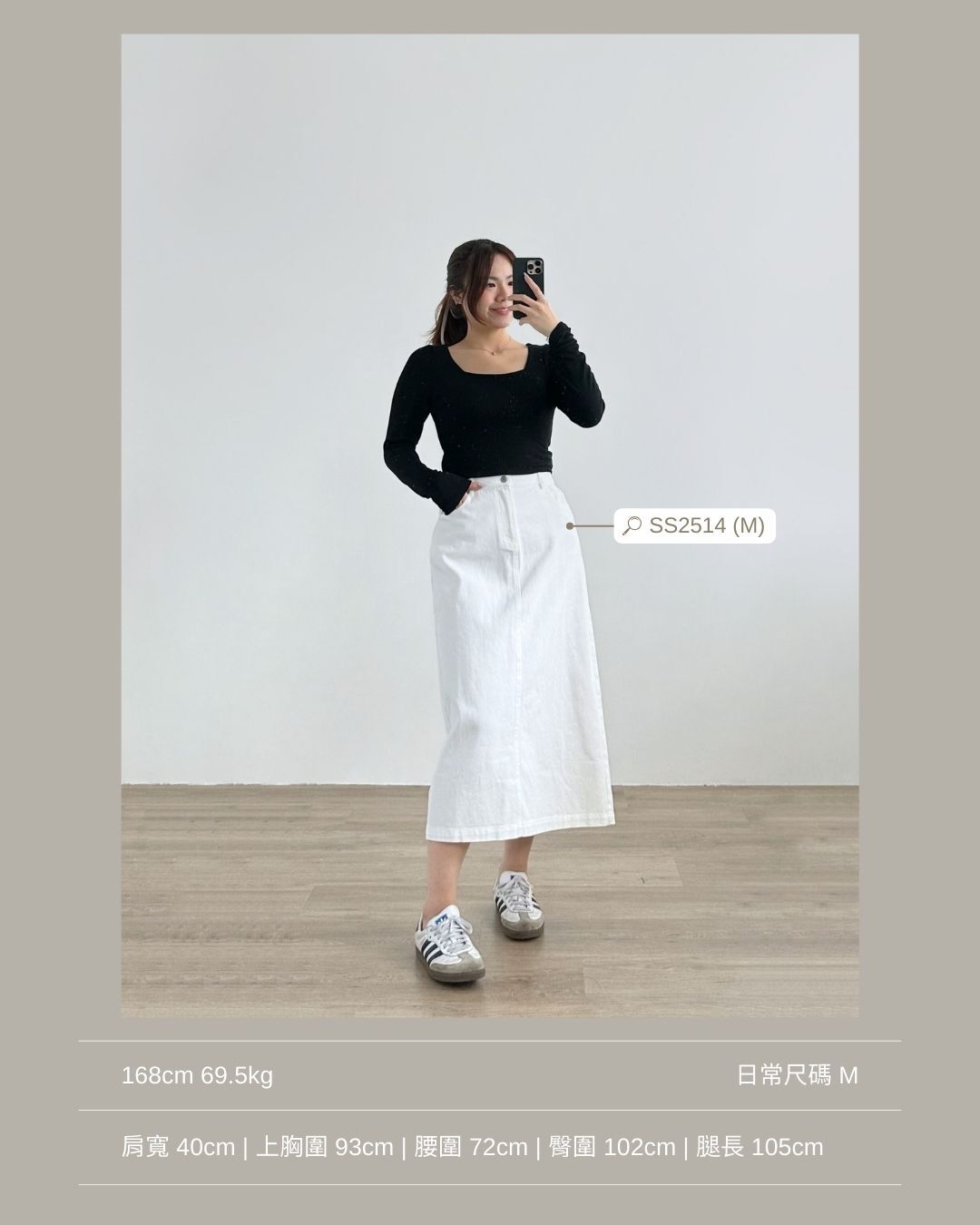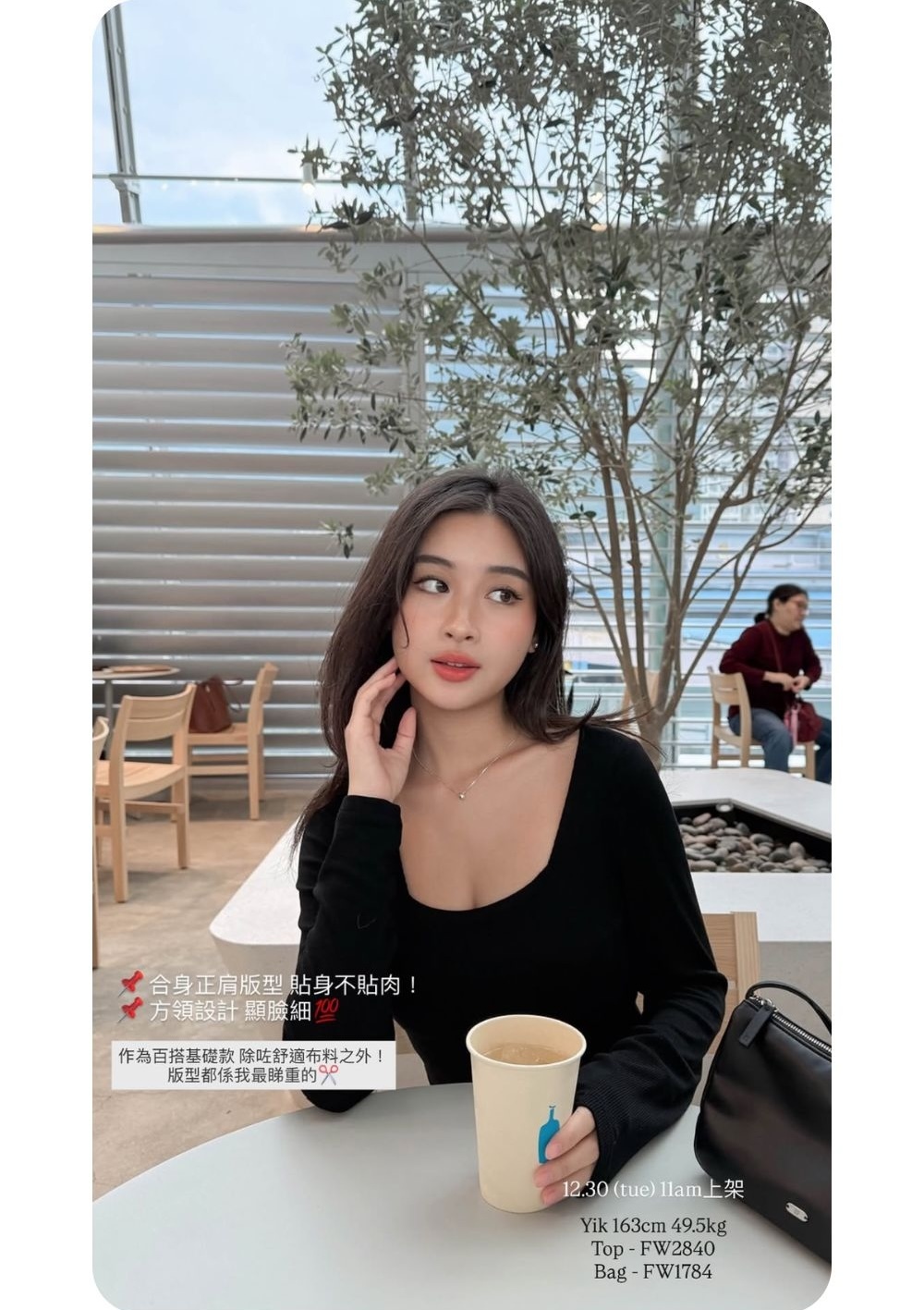 合身正肩版型 / 小方領設計 / 安全不走光的領型 / 衣長剛好觸碰褲頭 / 顯手臂幼