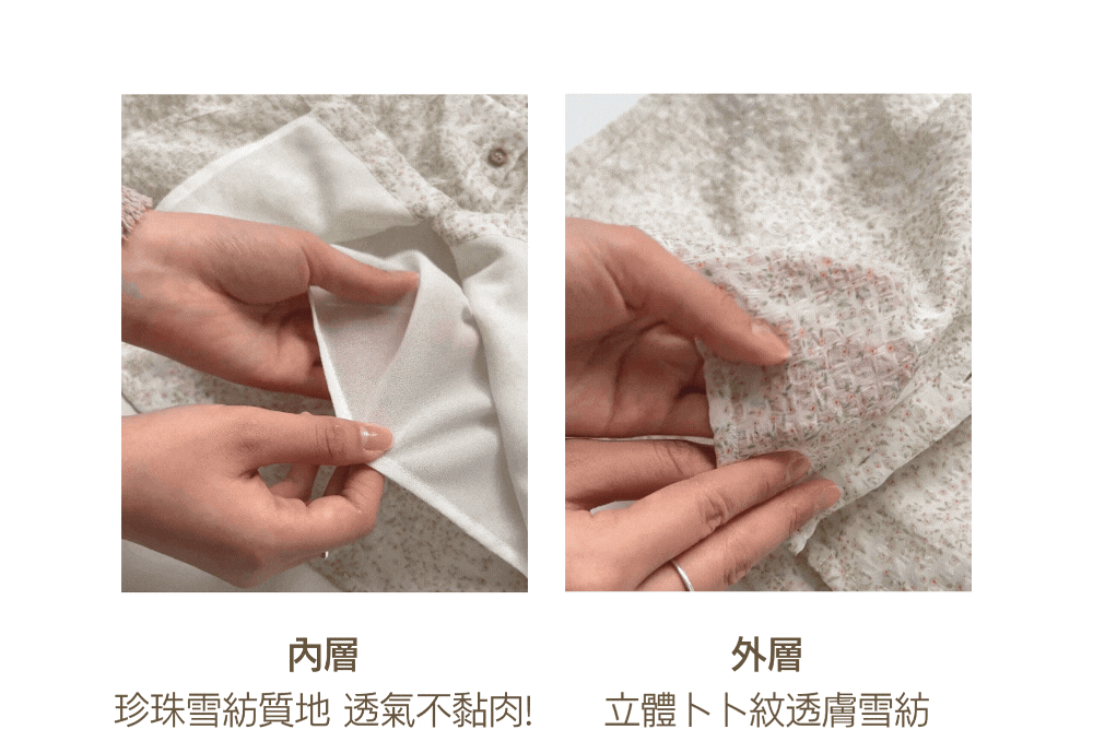 ⋄ 內層為珍珠雪紡質地 透氣不黏肉