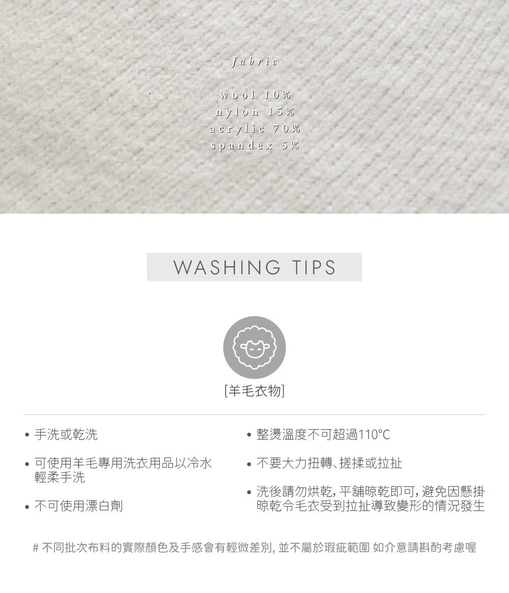 厚款 / 挺版柔軟針織質地 / 10%wool / 品牌logo質感小圓牌