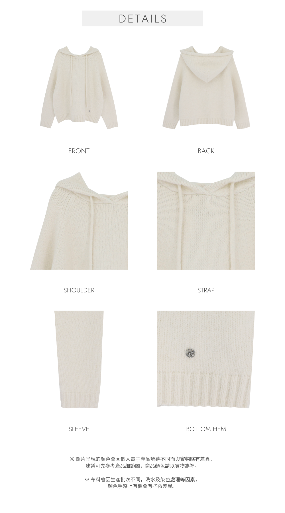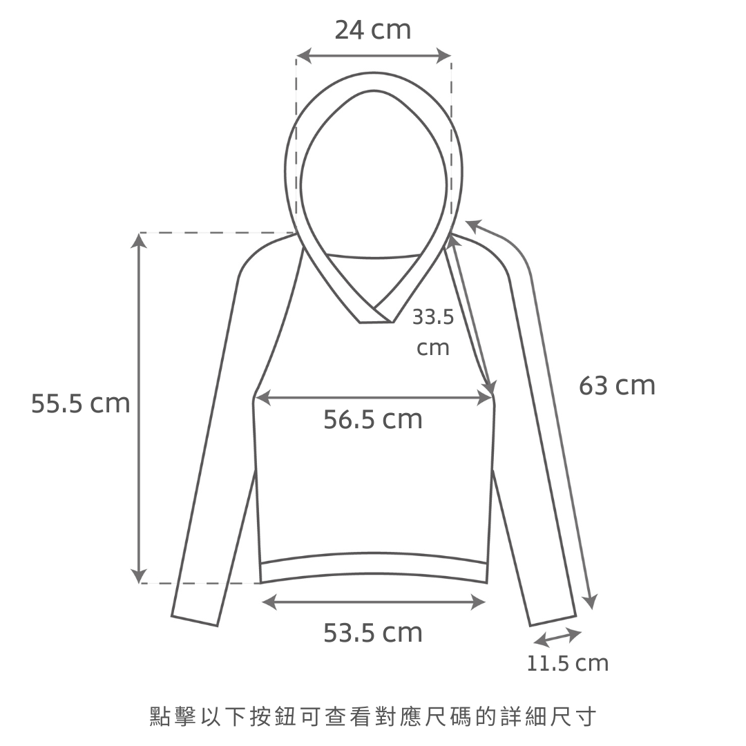 合身衛衣版型 / 無肩線設計 / 不顯肩寬 / 立體大兜帽 / 手袖及衣尾立體羅紋