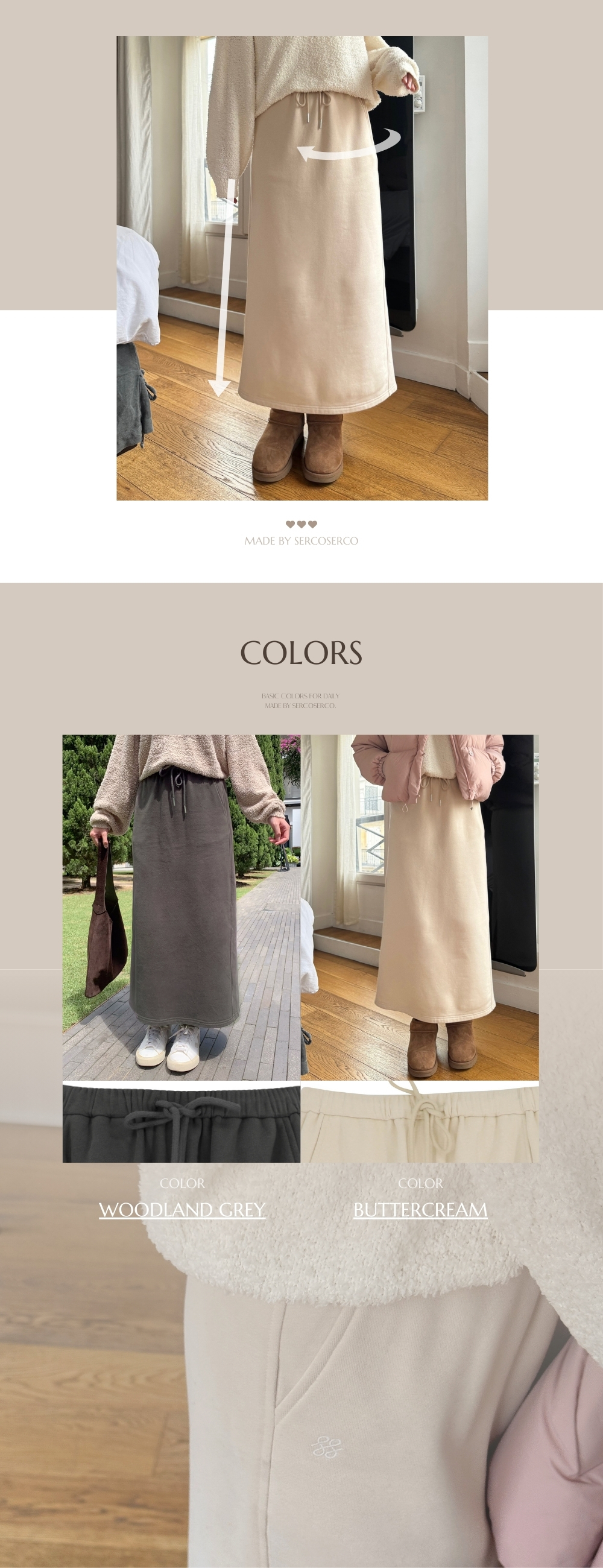 ⋄ 全橡筋抽繩裙頭 可進一步收細腰圍