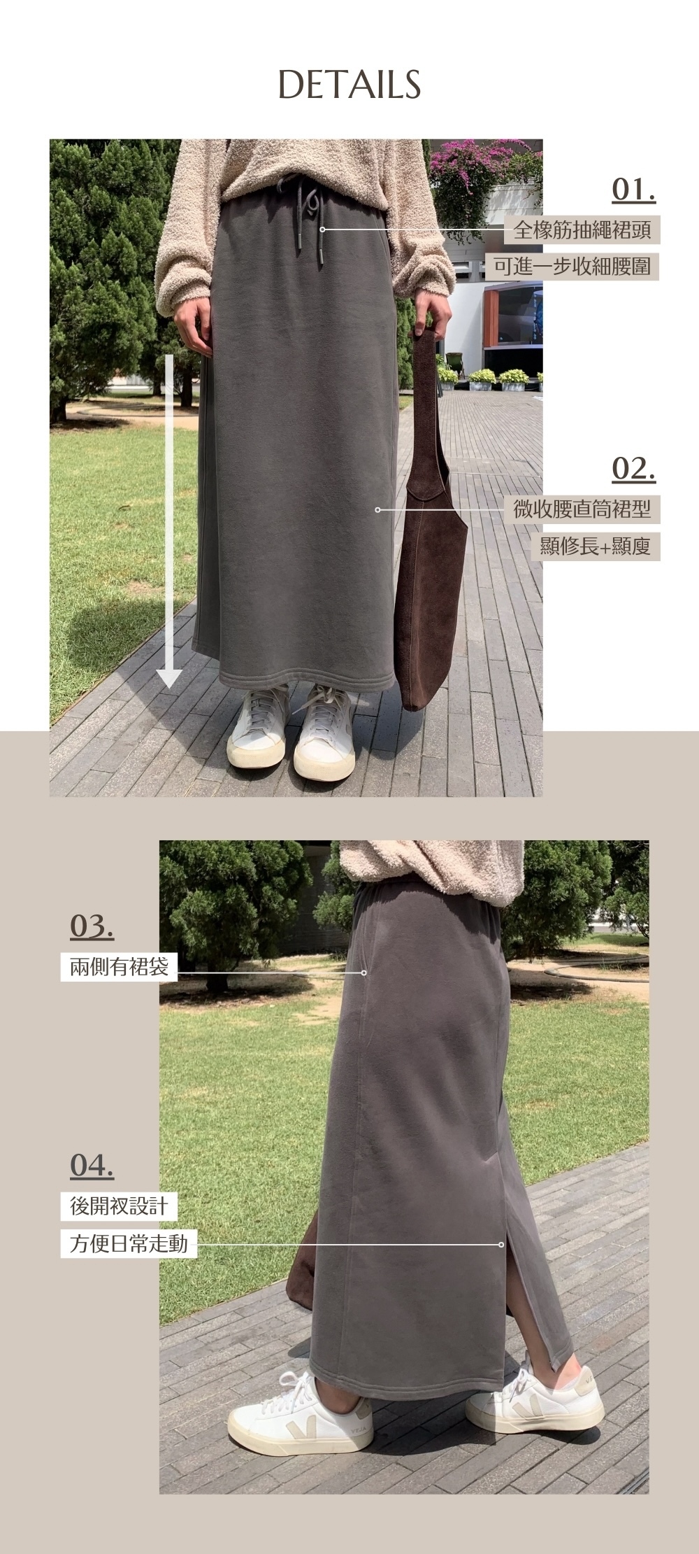 ⋄ 後開衩設計 方便日常走動