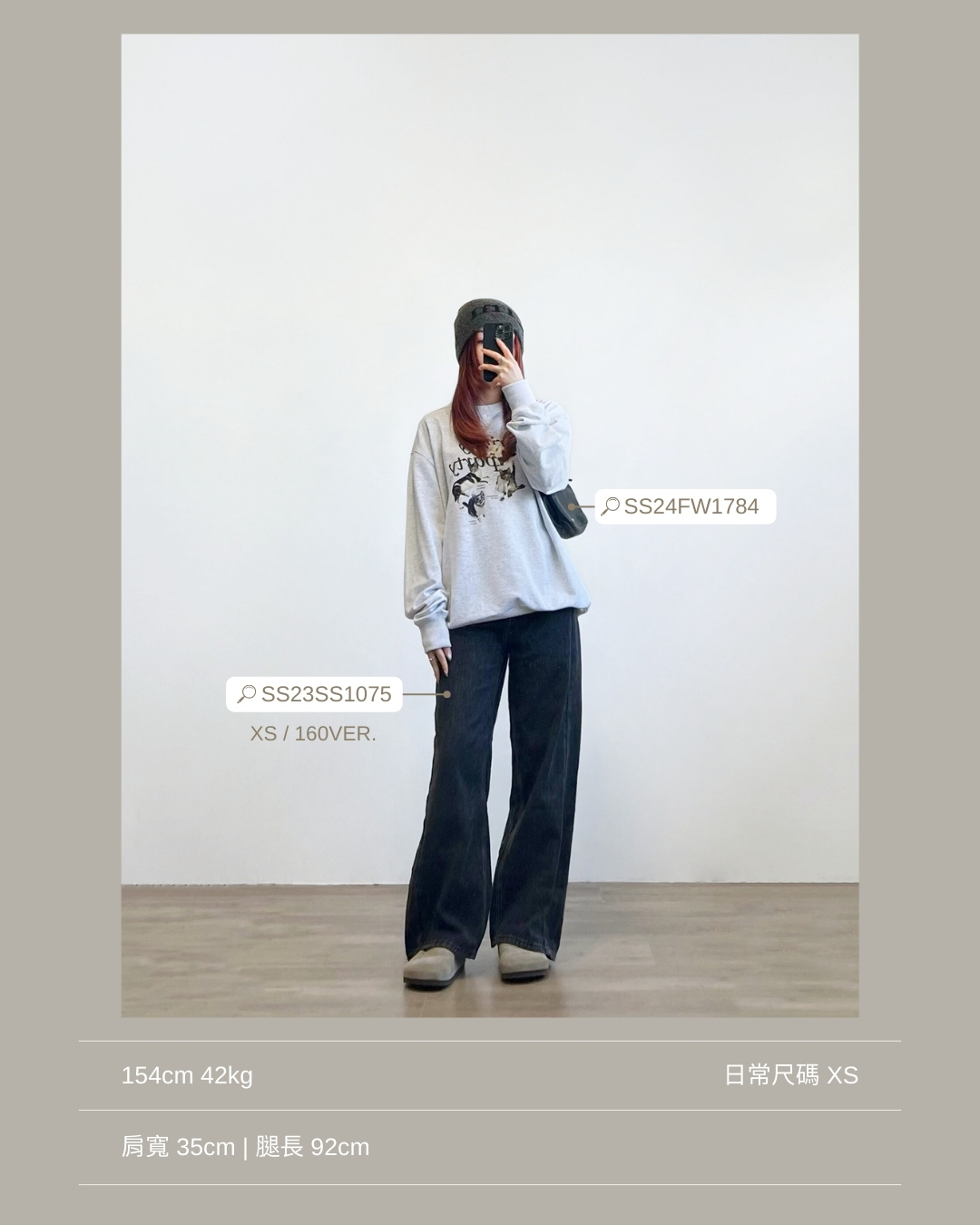 ⋄ 寬鬆落肩設計 女生穿著長度可蓋過屁股