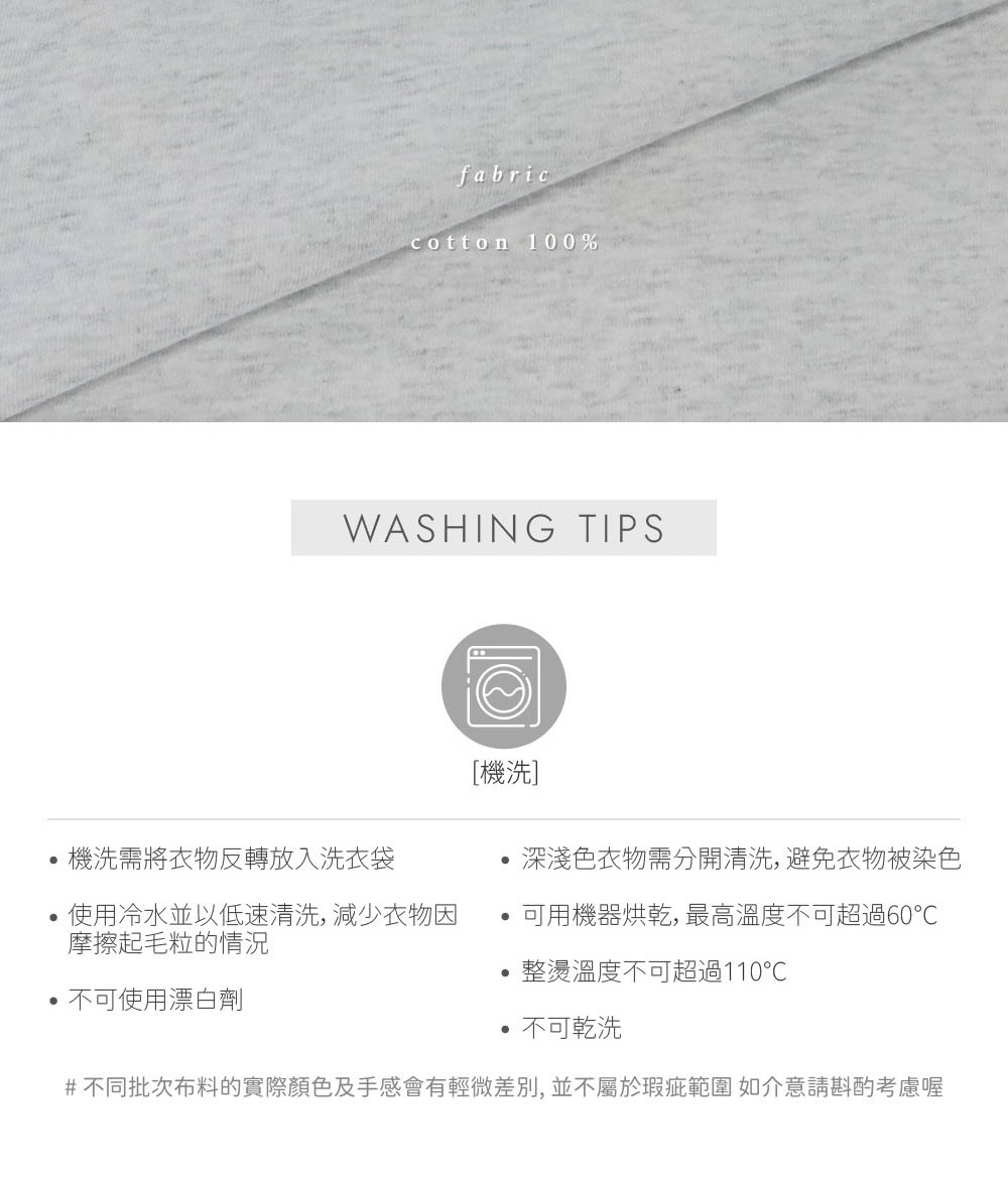 ※ 建議清洗前反轉放入洗衣袋內,可減輕印刷圖案的磨損