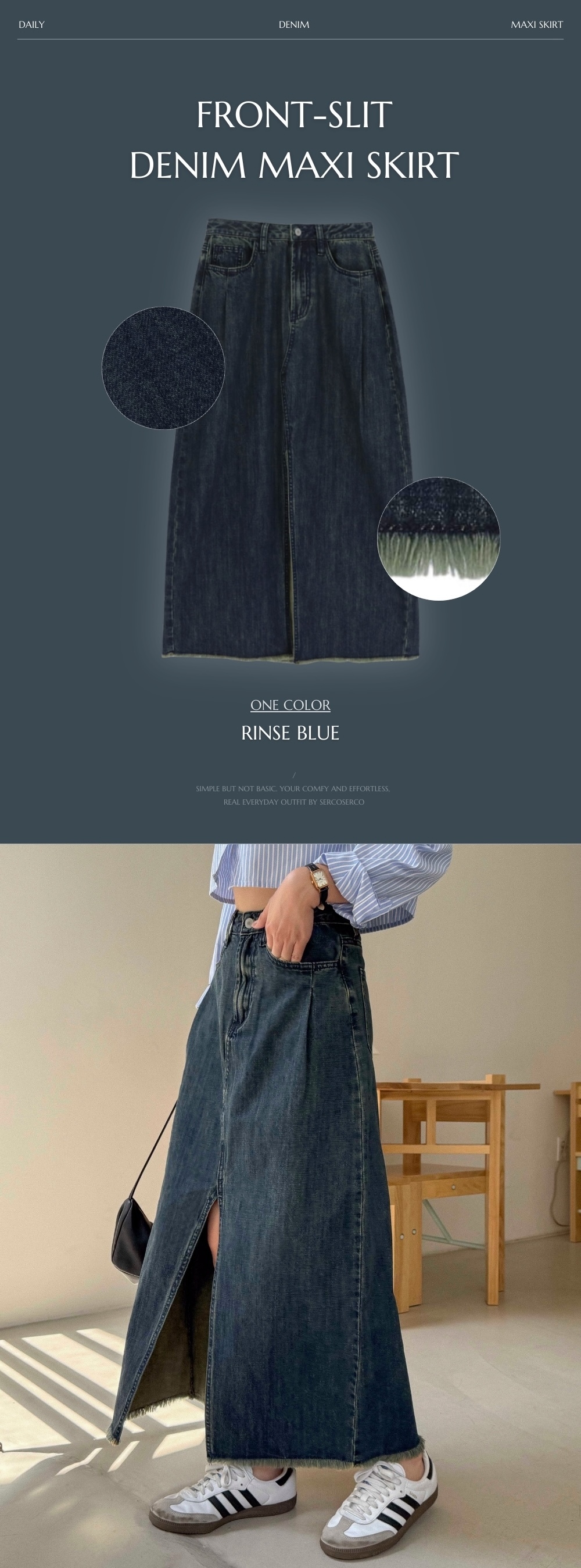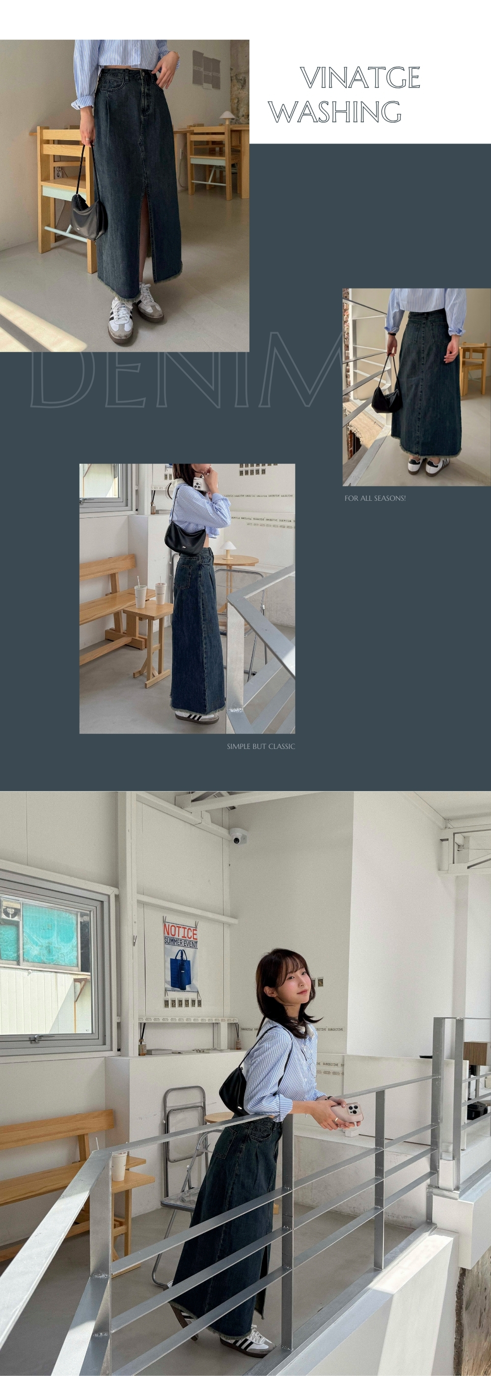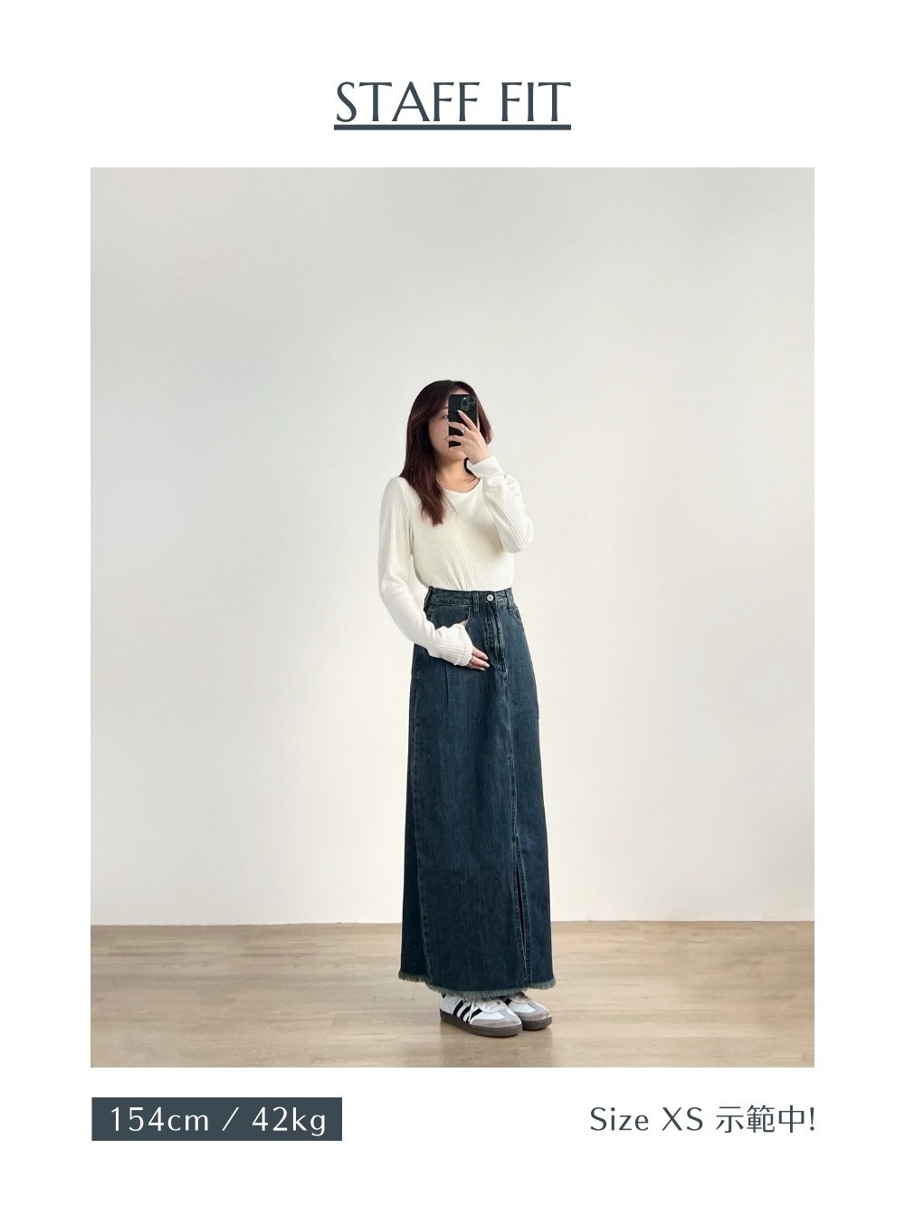 自帶氣場的9分長牛仔半身裙