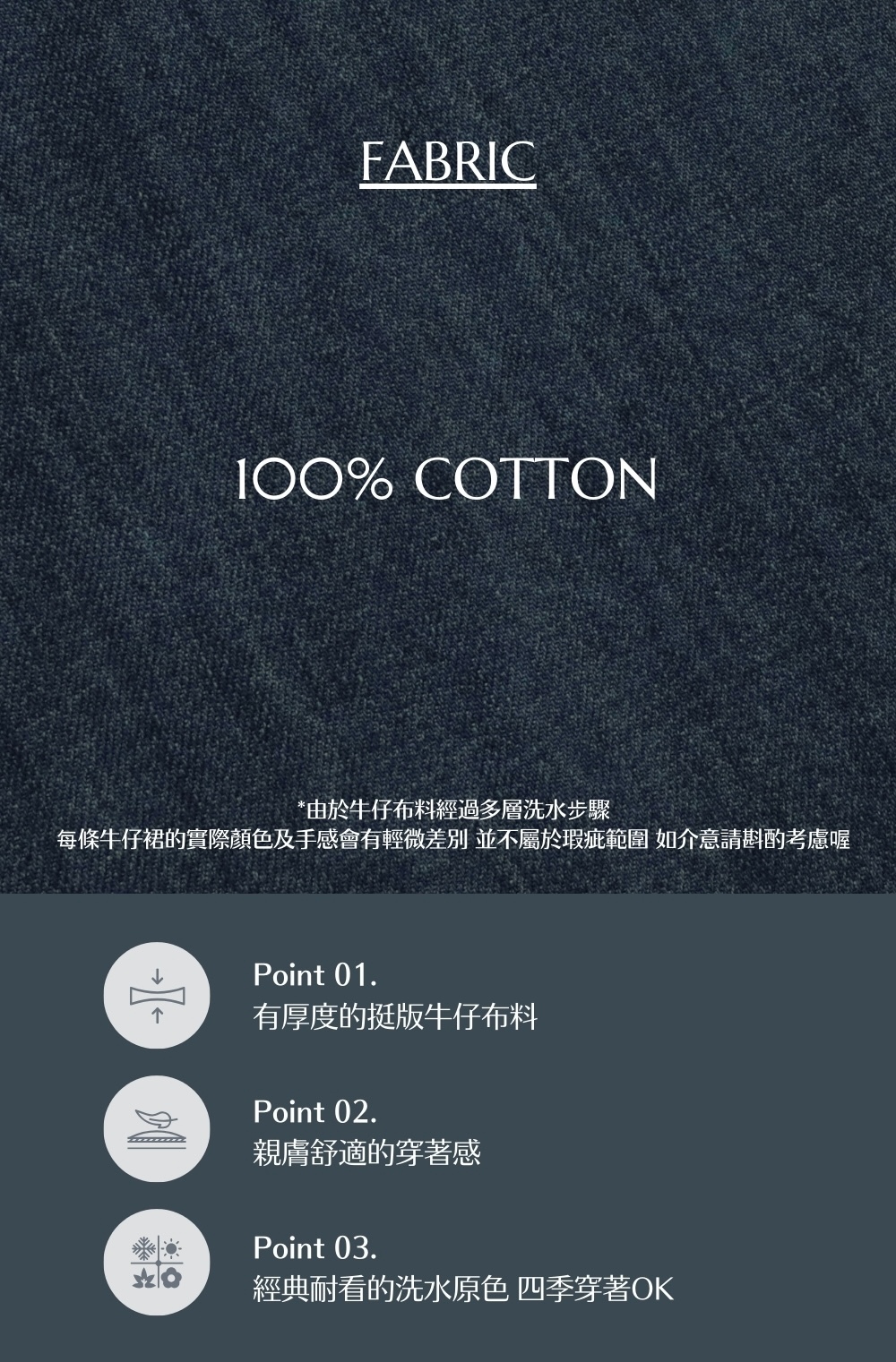 ⋄ 有厚度的挺版親膚牛仔布料