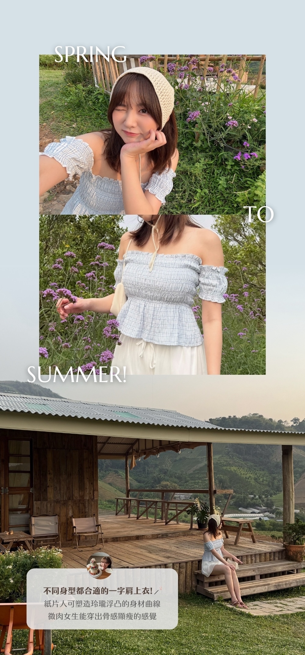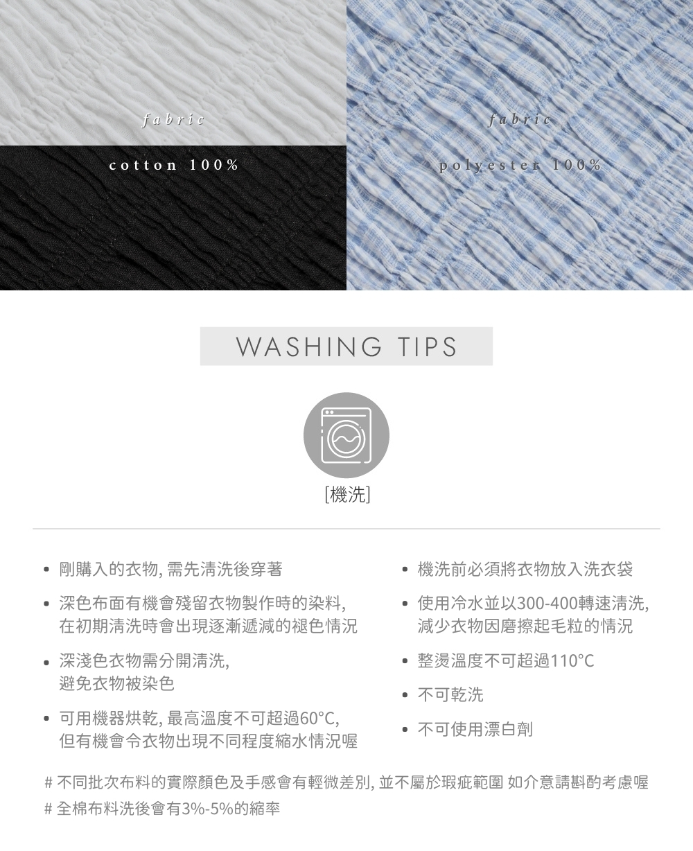⋄ 淺藍格紋為清爽透氣的立體紋理布料